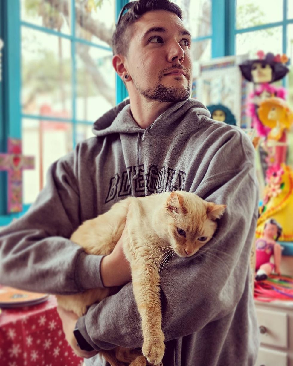 In order to fill that void, he decided to share his love for the feline on Instagram one day on a whim by uploading a photo he took with his friend's cat. Since then, he has captured every moment he shares with his feline friends and won't let them go without some cuddles.