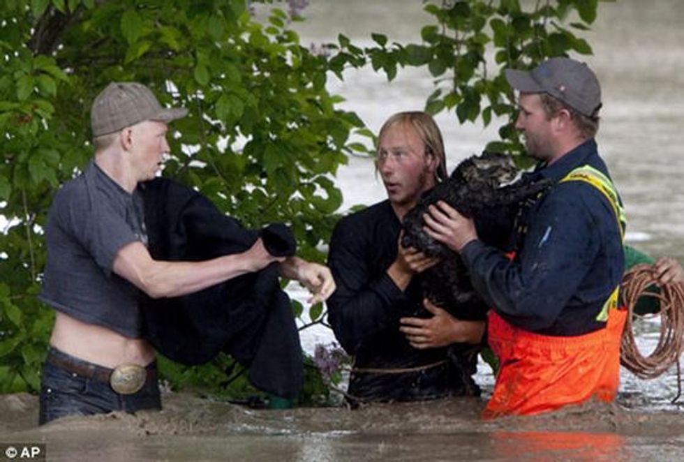 A man kept his beloved cat with him and swam in the rising flood waters to make sure his cat made it to safety as the torrential floods hit western Canada.