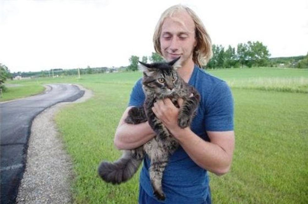 Kevan Yaets and his cat Momo were stranded in their pickup truck and had to swim to safety before the vehicle became submerged in flood waters.