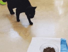 Five days after adoption, she learned that her new home wasn't that bad and decided to come out from hiding to eat instead of having her meals under the bed.