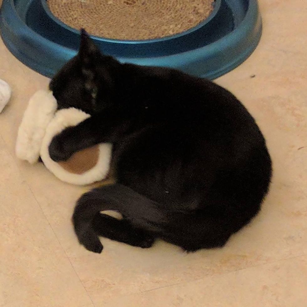 Ayame cuddled with her human's earmuffs one day and couldn't get enough of it.