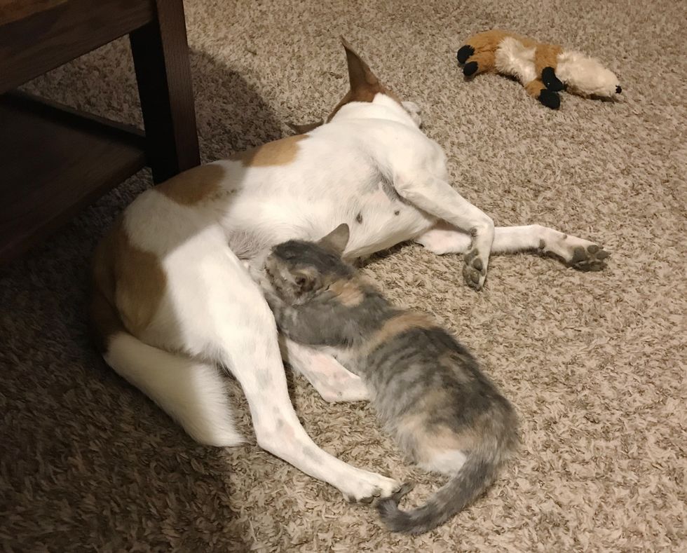 Nebula was thrilled to have a nursing mama that she could latch on.