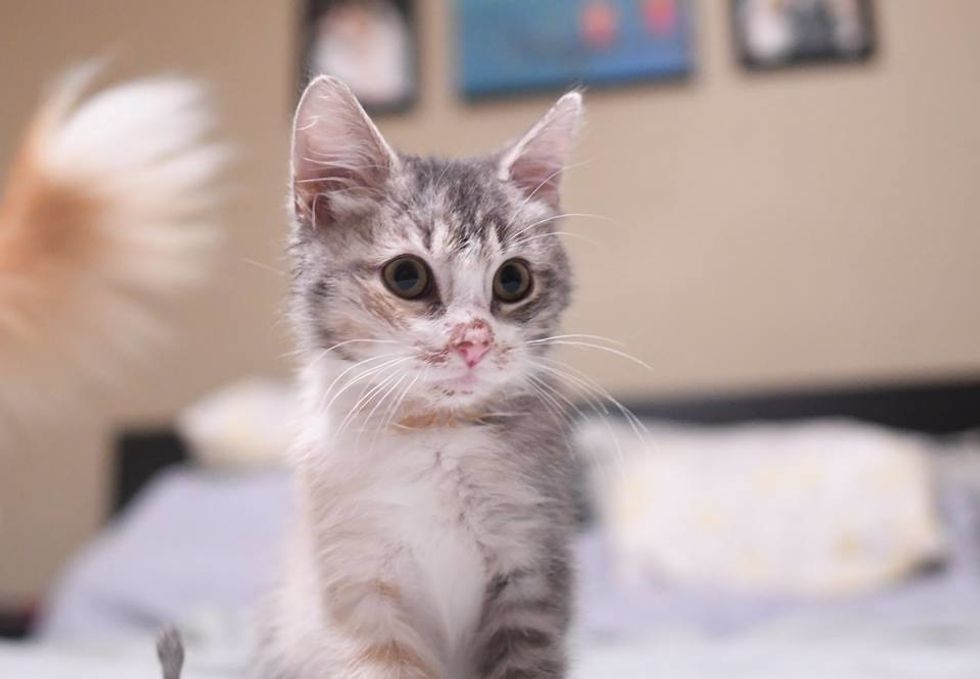 When the kitten arrived at Dallas Animal Services, she needed a lot of help. Gabi Vannini, foster mom, took the kitten into her care. While trying to wash off all the fleas, Nebula threw a tantrum, trying to fight to get out of the bath.