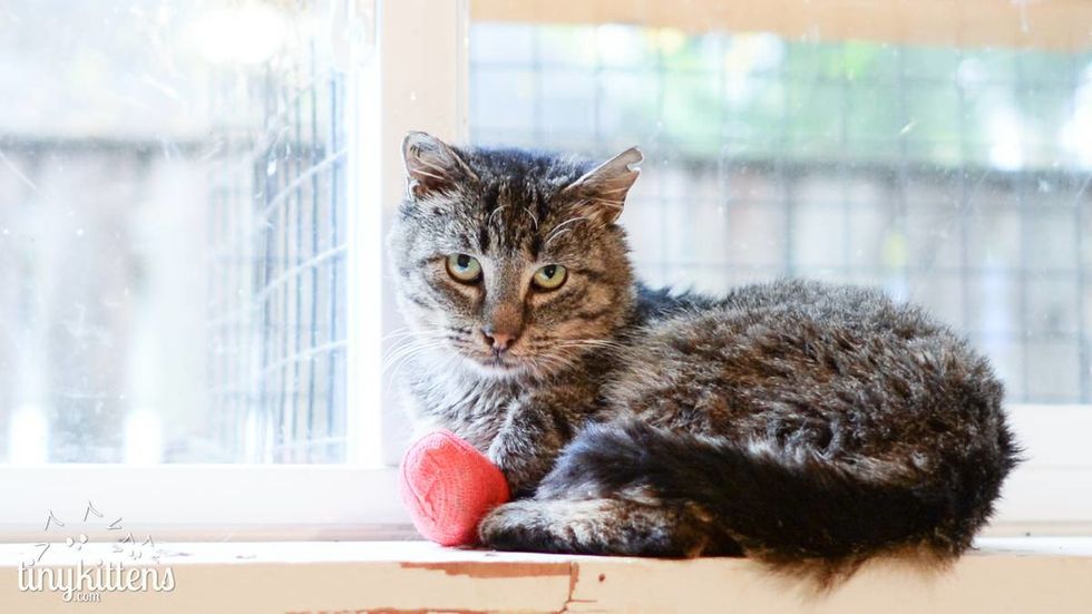 TinyKittens, a rescue group in Langley, British Columbia (Canada) has a Grandpa Cat who came to their residency in 2016. After spending most of his life living as a feral, he was found in poor shape, covered in battle scars, with terminal kidney disease, and fighting for his life.