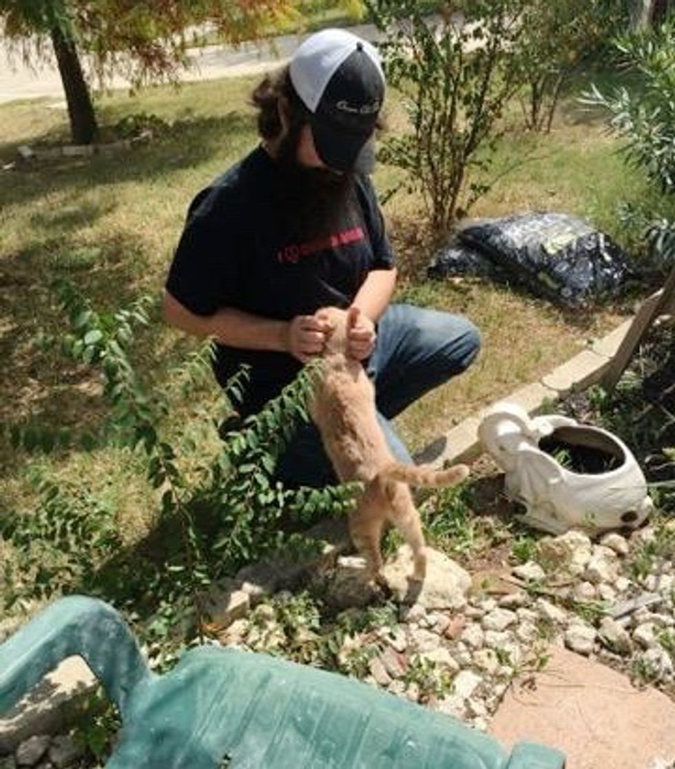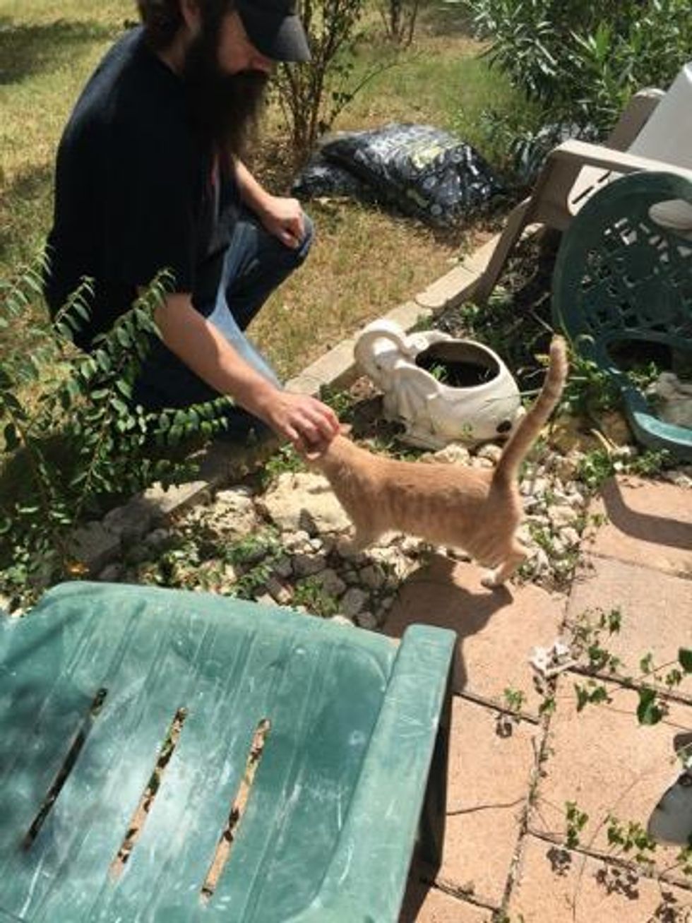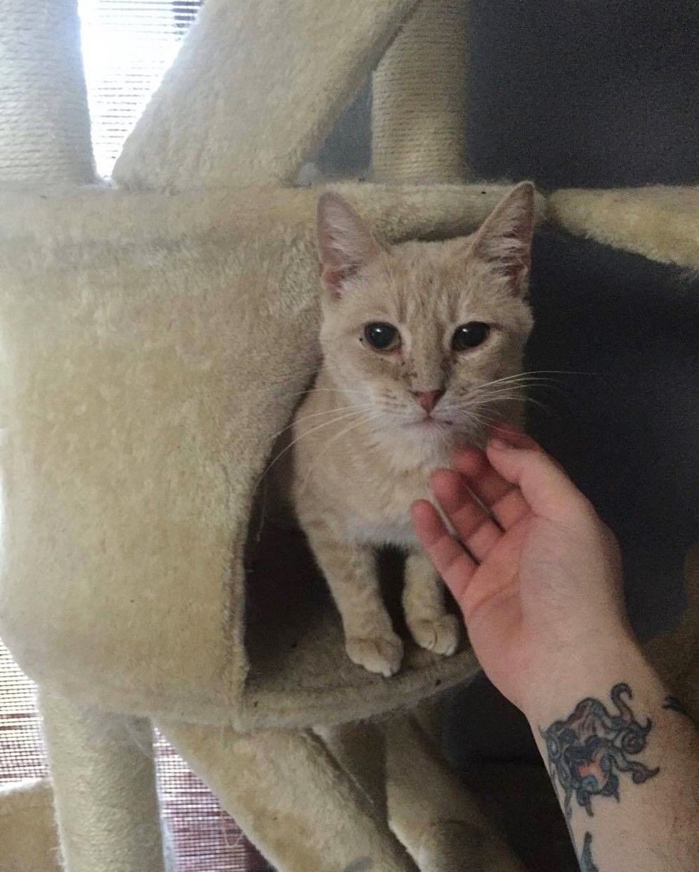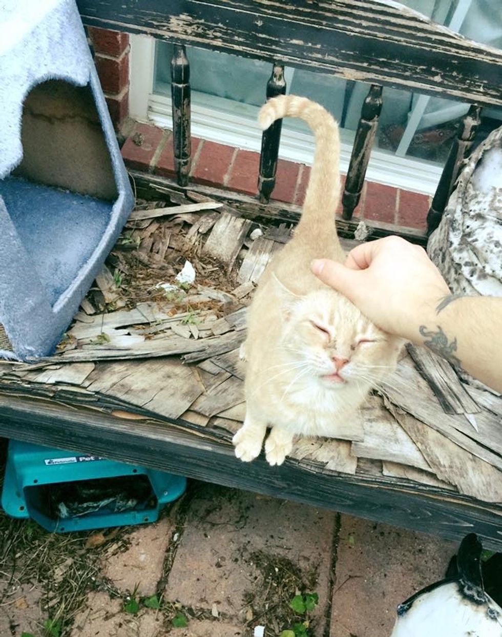 They named him Torchy in honor of his finder. The ginger cat absolutely loves head scratches.