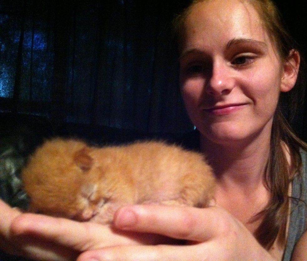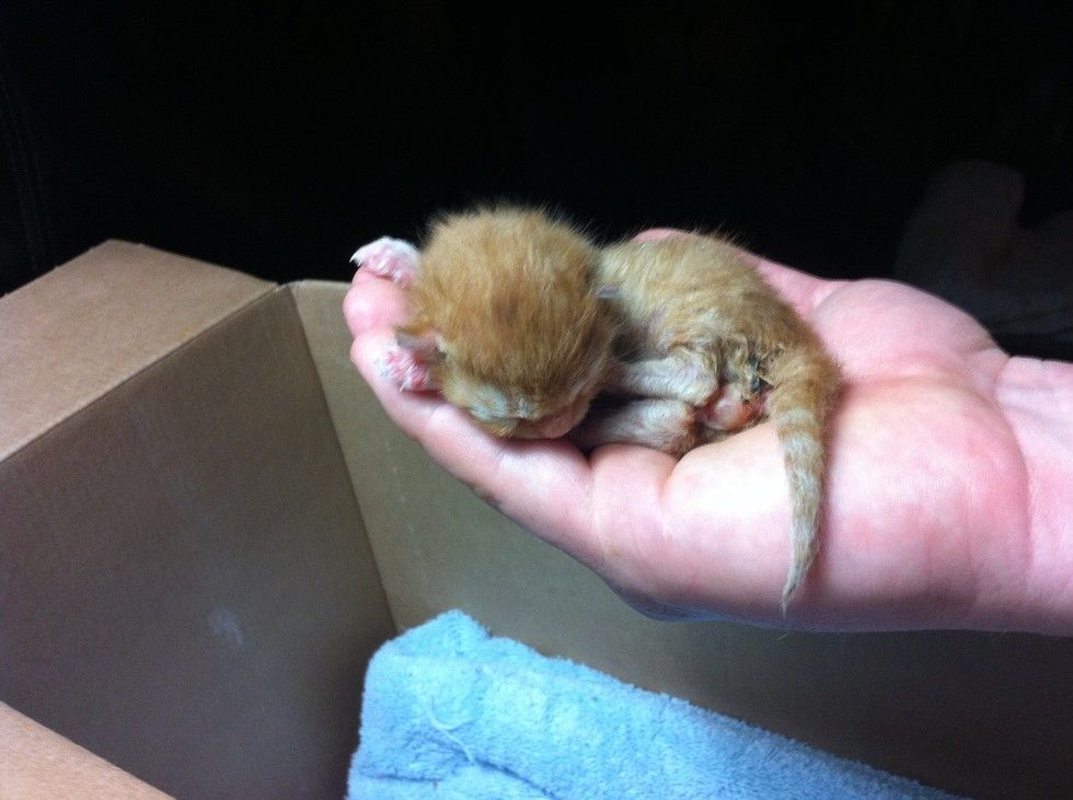 "Neighbor found this tiny guy under his truck. The vet said he was only two days old and his chances of survival were low," imgur user Killerismycat said.