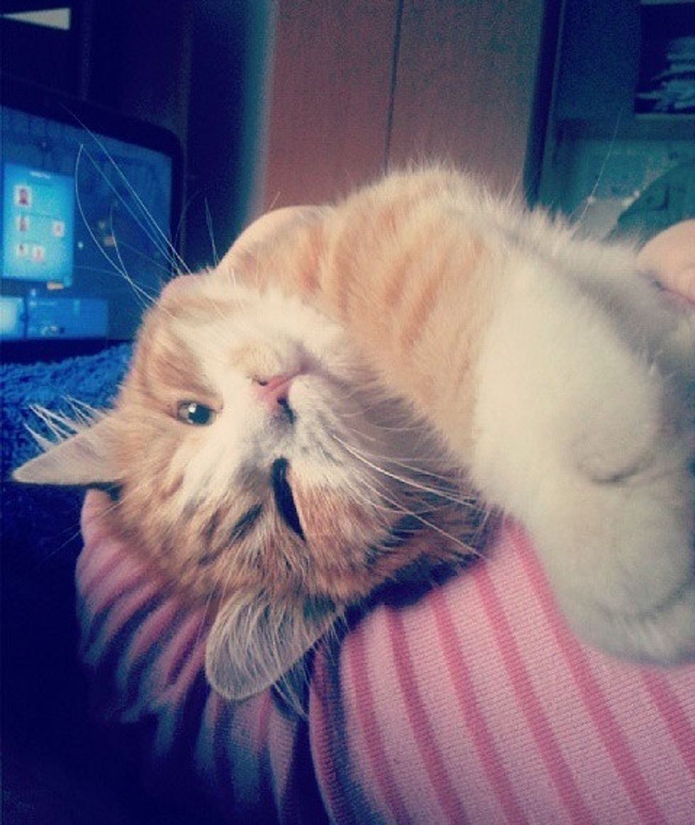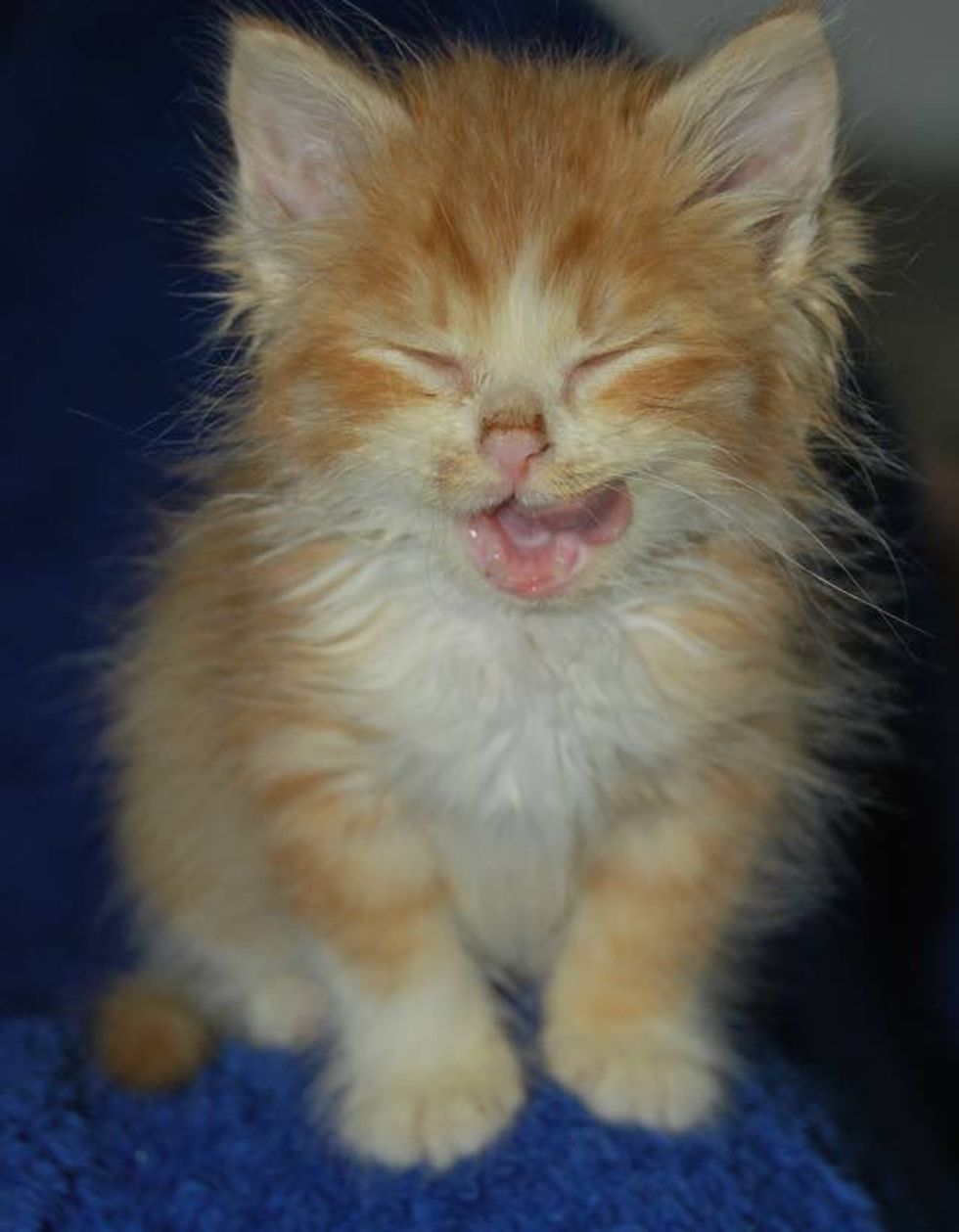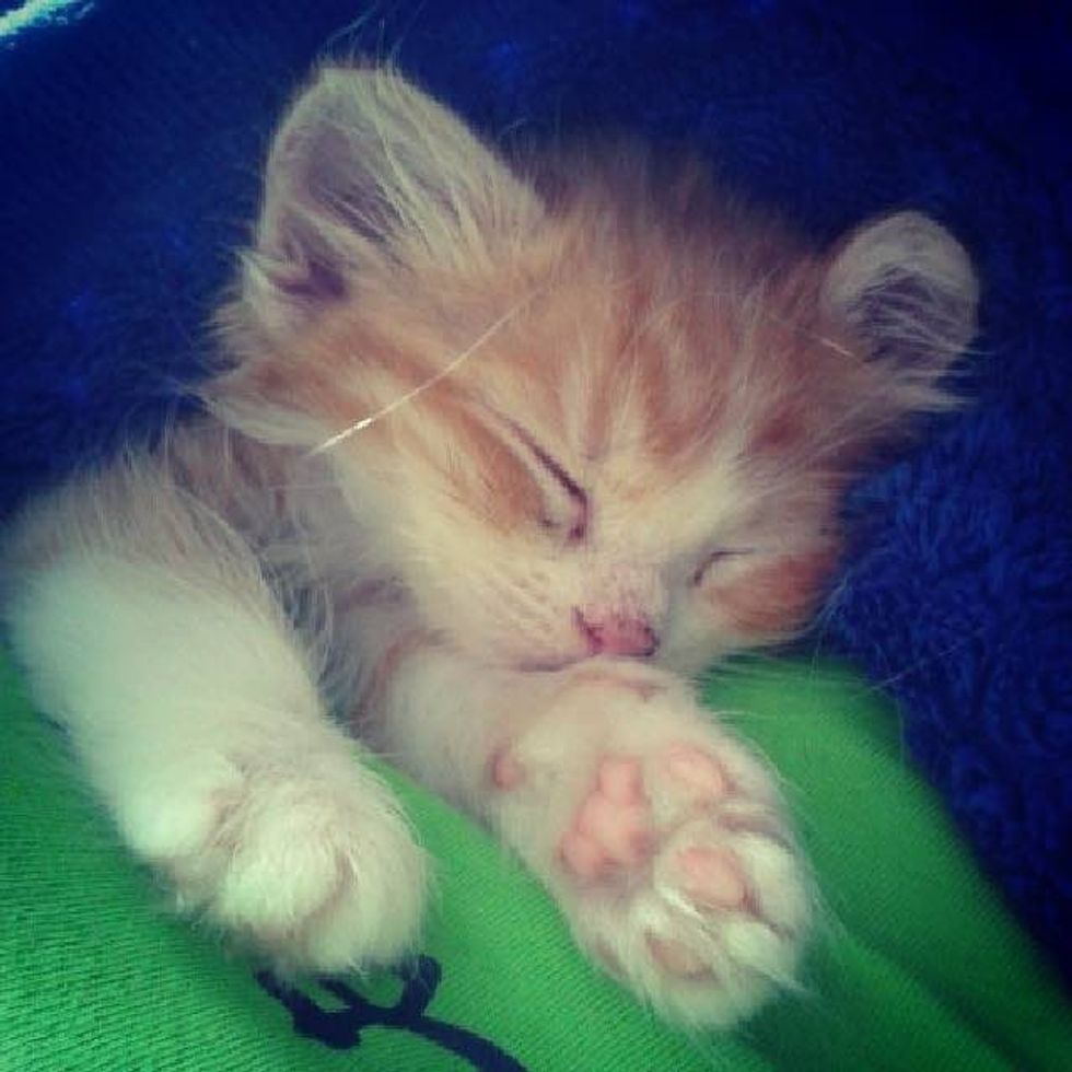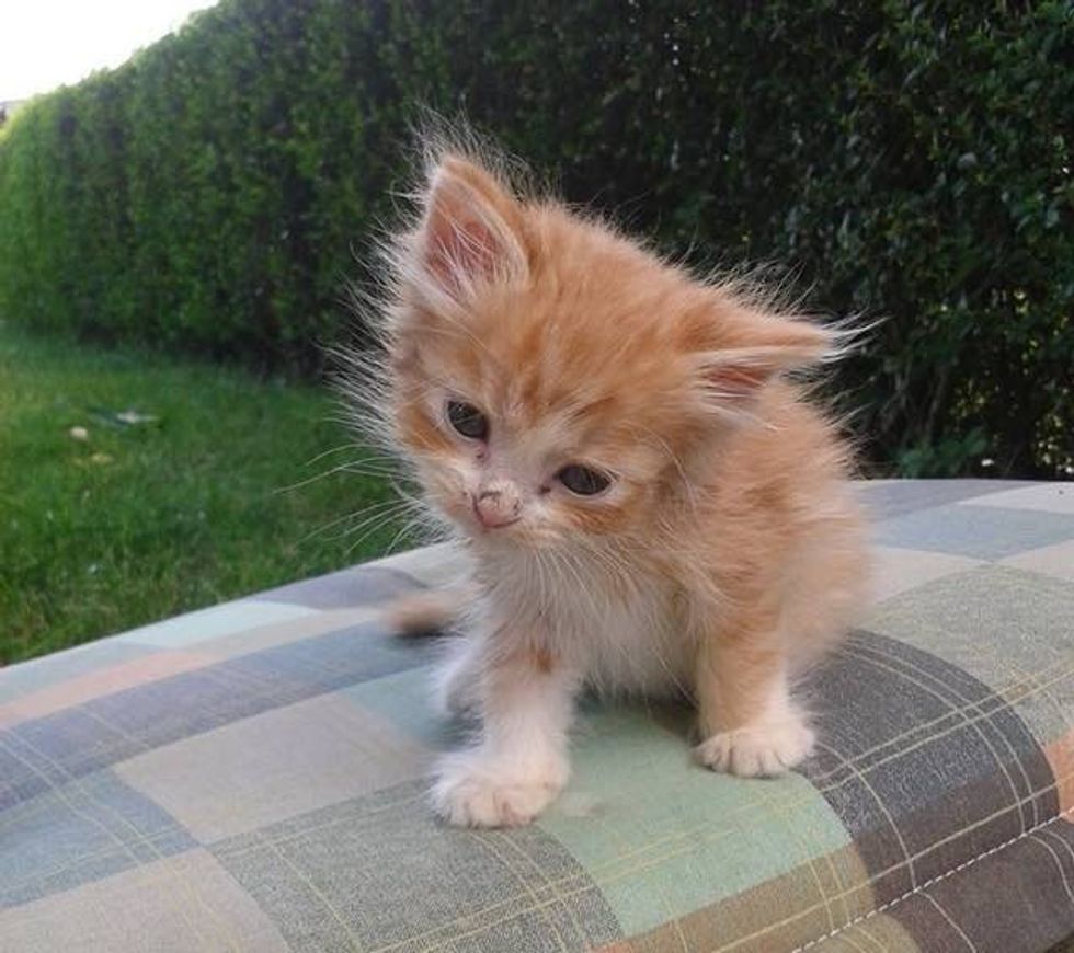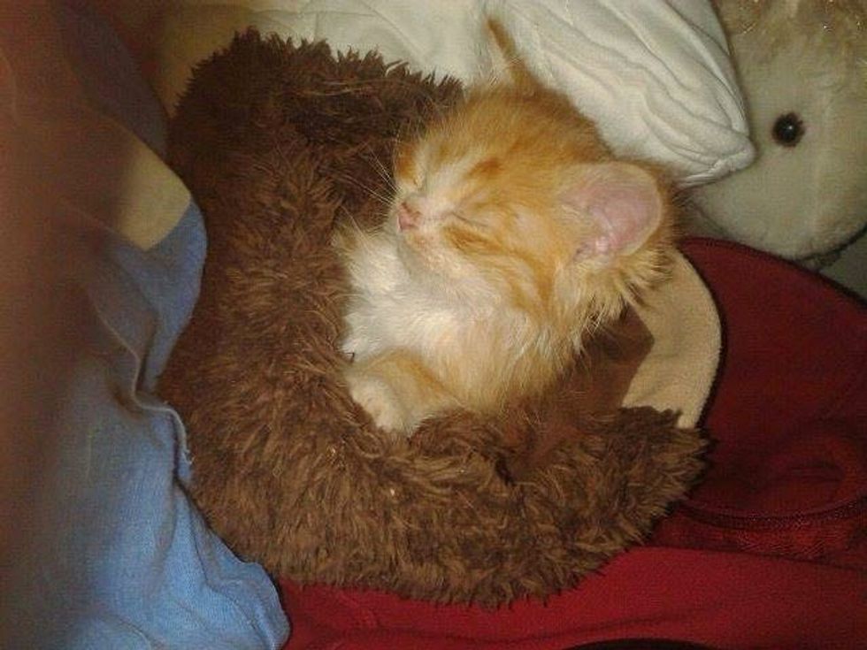 The little ginger, who was found without a mom, now has a big family that loves her to bits.