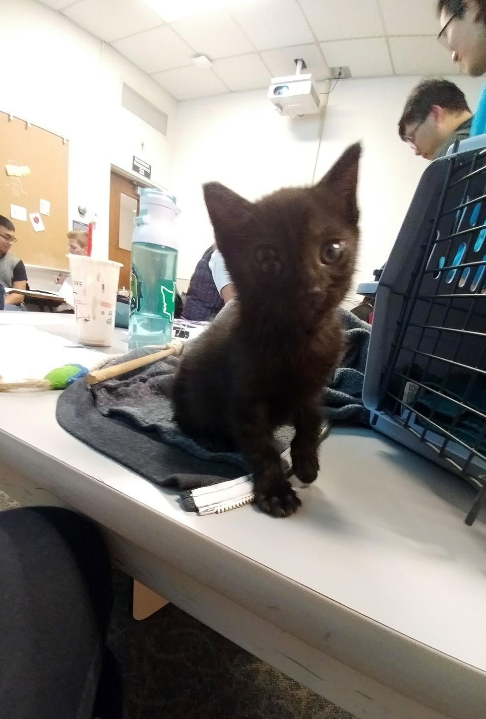 A tiny orphaned kitten lit up the classroom and lifted the spirits of the students who had been under tremendous stress lately.