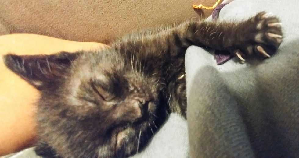 Little Ony came to her foster mom about a week ago, and she was so happy to finally be cared for. "She loves cuddles, playing, and sleeping on my chest. She is a little delight!"