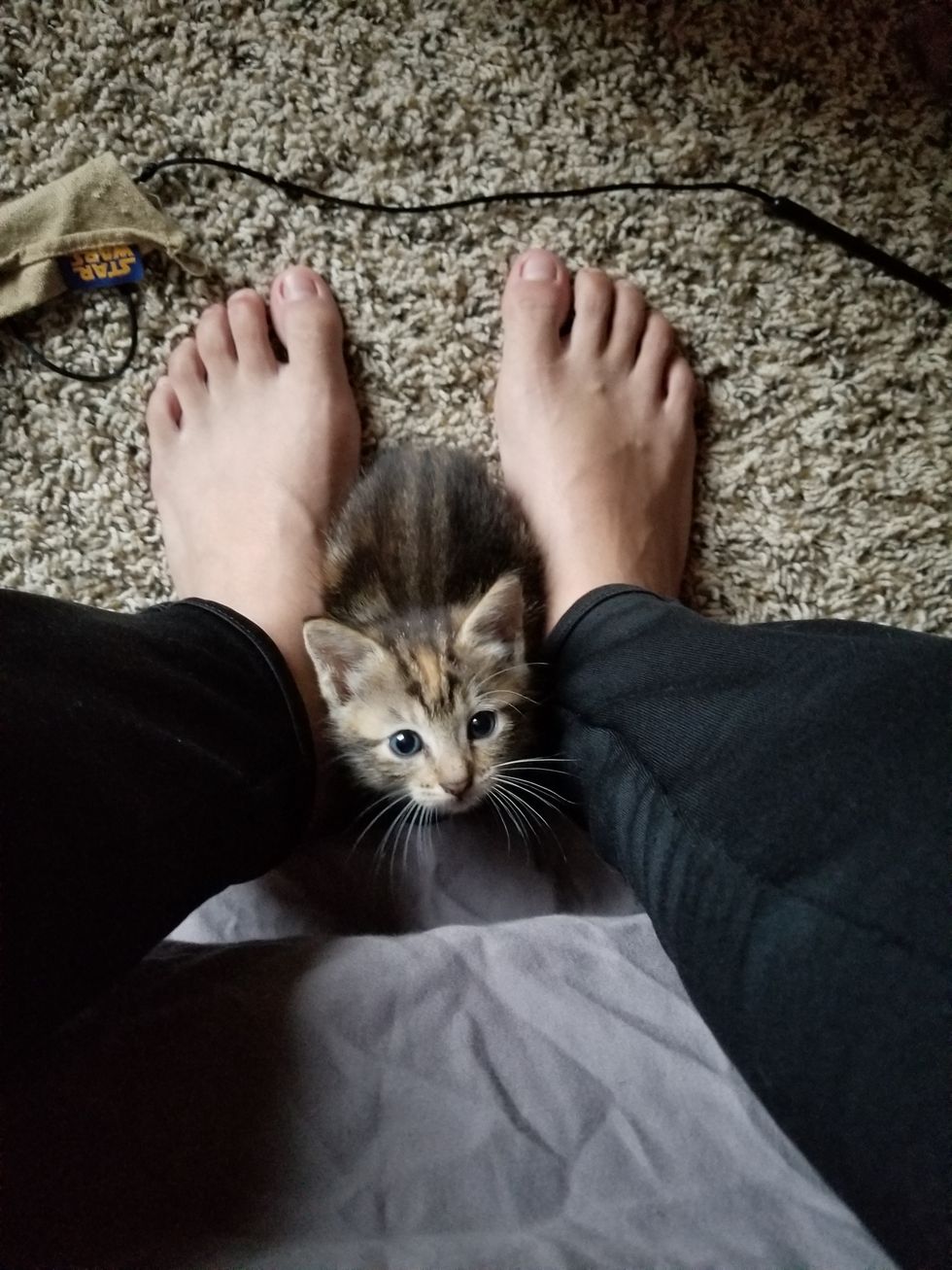 Tatiana and her family had to move to higher ground after their home (in Richmond) was flooded by the storm. Two days ago, she spotted a litter of kittens behind some bushes with a cat mother meowing.