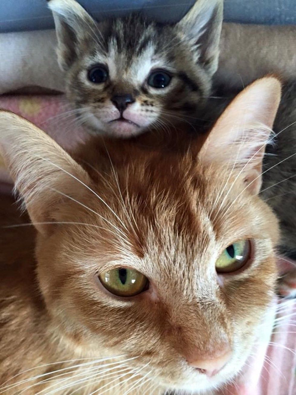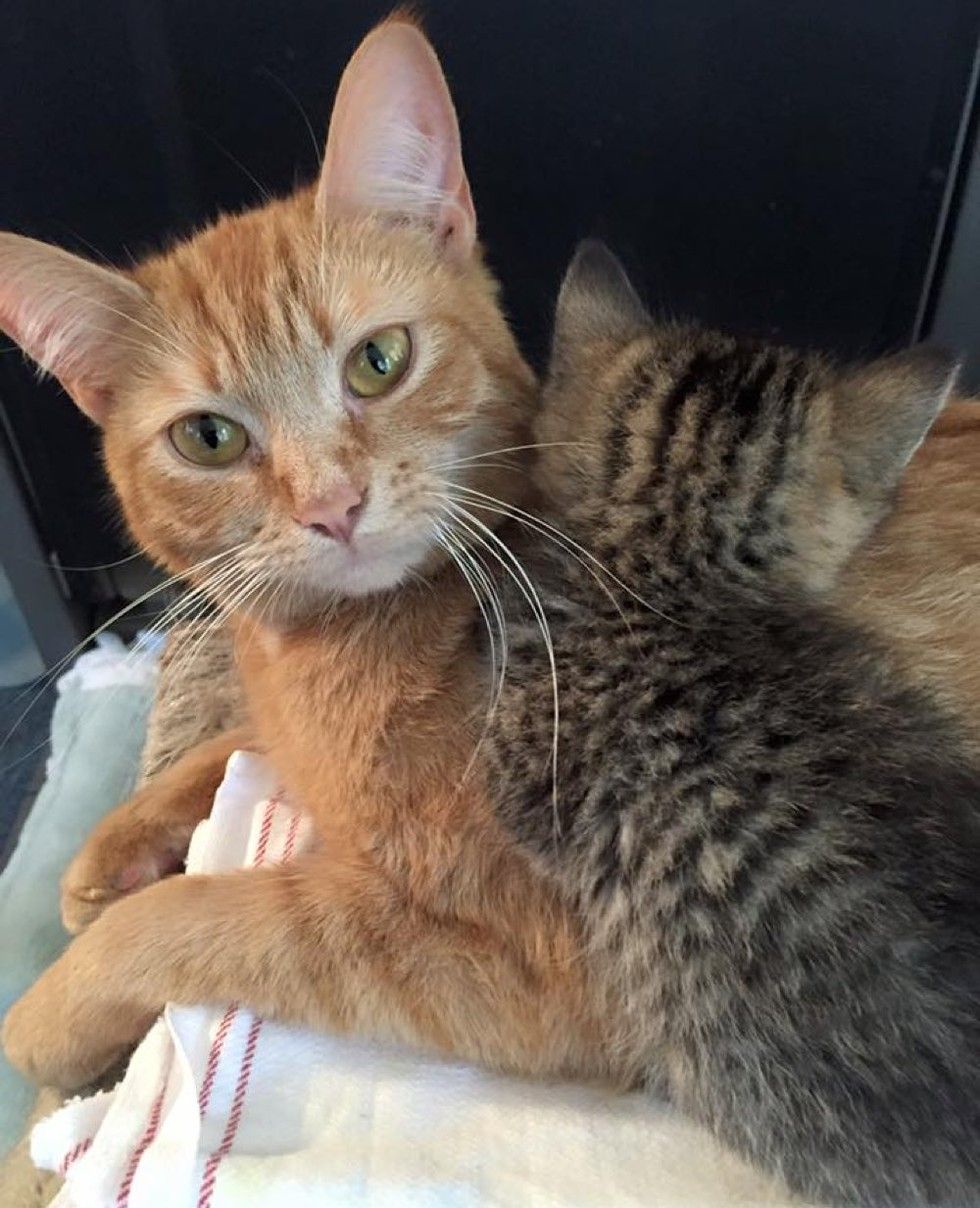 "Megan and Moha are inseparable and care for their wee ones interchangeably," Here Kitty Kitty Rescue (Elkhart, Indiana) said.