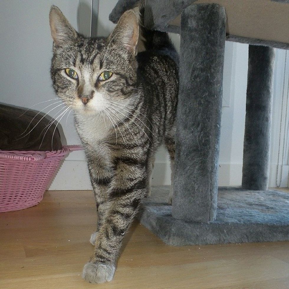 The tabby cat is loving his indoor life and hopes someday soon he will have a place to call his own.