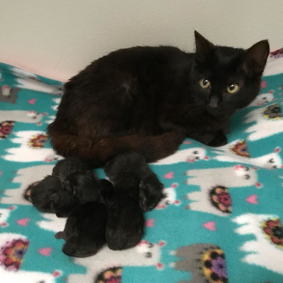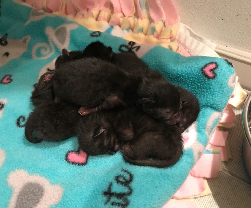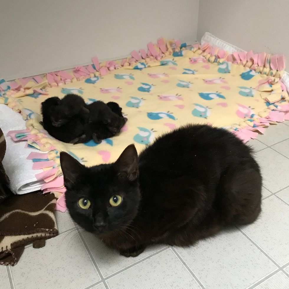By the next morning, Zen the cat had given birth to five healthy babies, her little mini-mes.