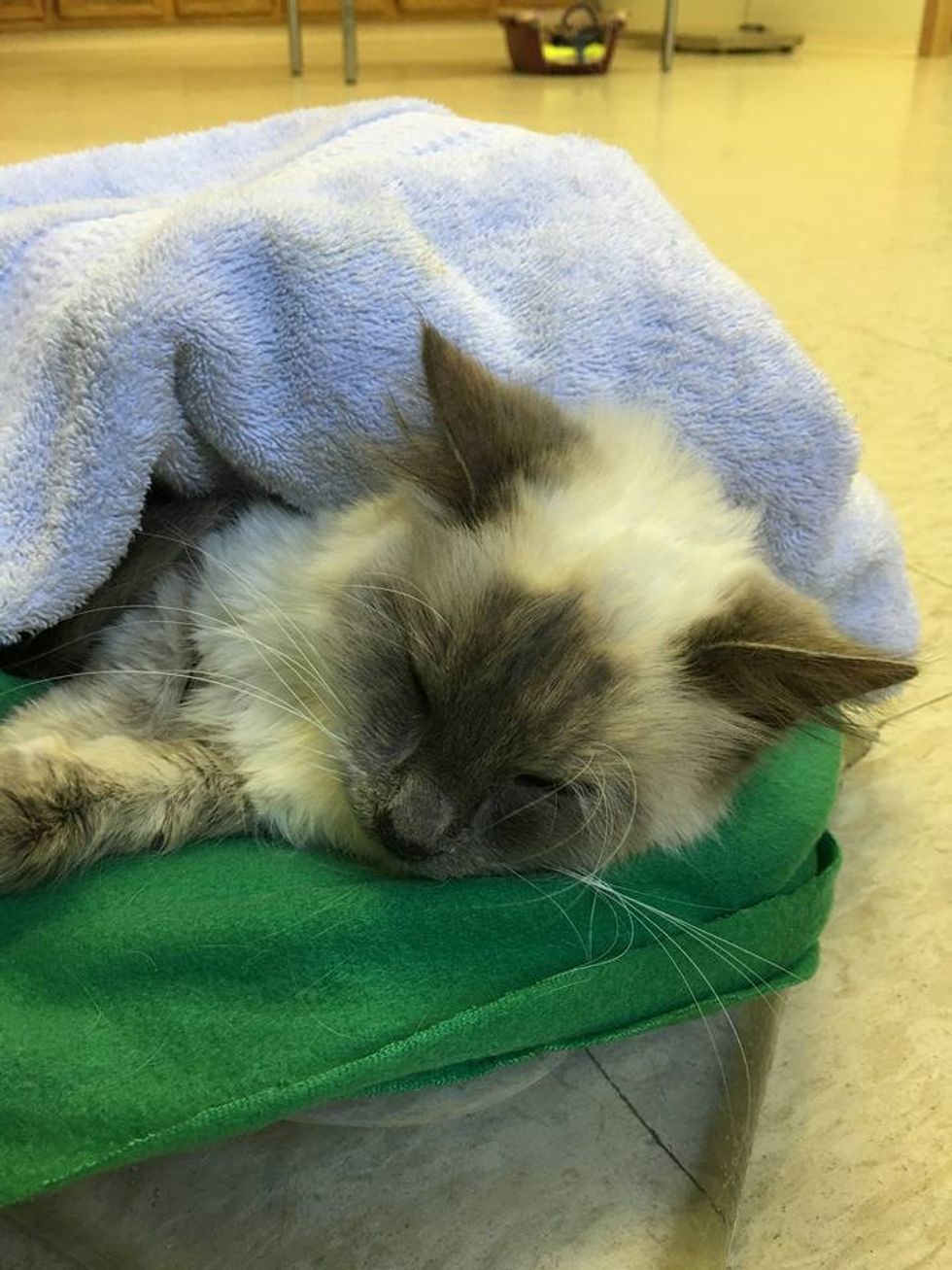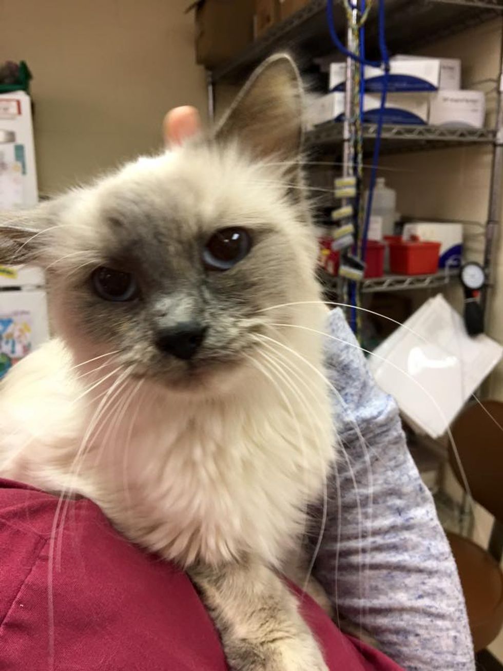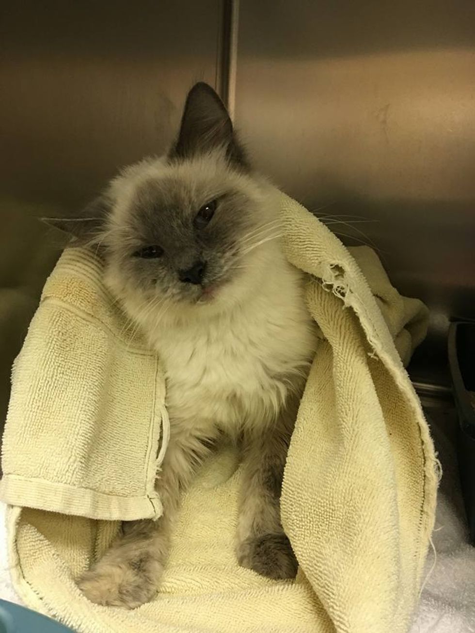 Sasha the cat was picked up by a humane officer and brought to the shelter.