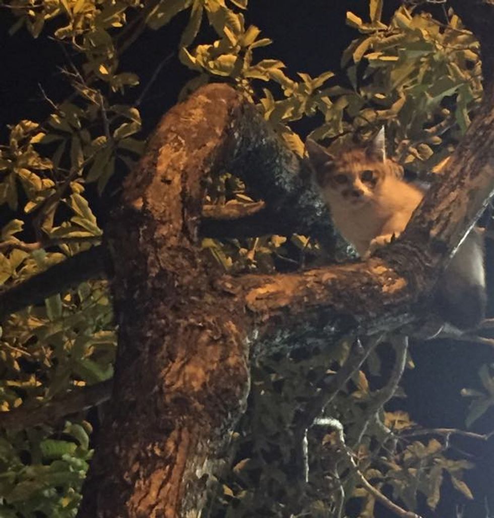 This cat loving man (from Taiwan) said he stopped his car and saw a kitten stuck up in a tree along the side of a bridge. When he tried to climb up into the tree to rescue the kitten, the cat darted away and fell into the river beneath.