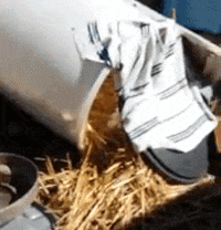 Turns out, the mama cat went ahead of the rescuers to make sure her babies were safe and warm. She found dry hay in the backyard and moved it into the bin.