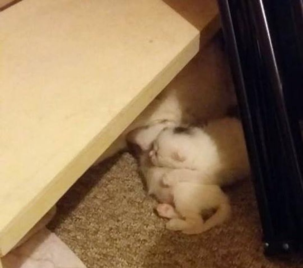 Mama found a spot under the shelf and began feeding her two precious babies.