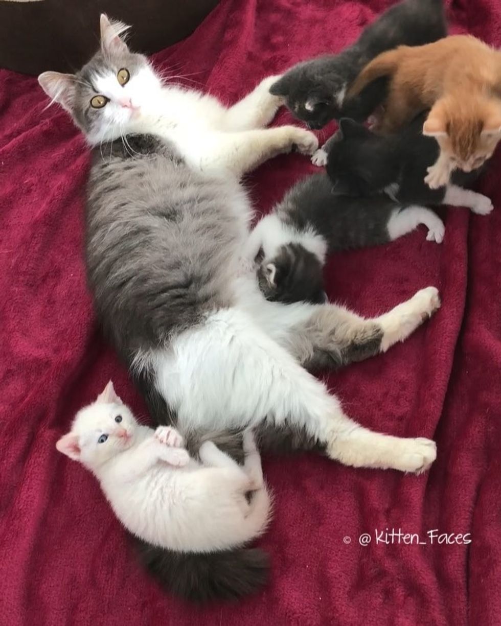 "It's great for them to have a mom other than me. And for Honey's kittens, it will be fun for them to have the others to learn from. Honey absolutely loves having more babies to nurture."