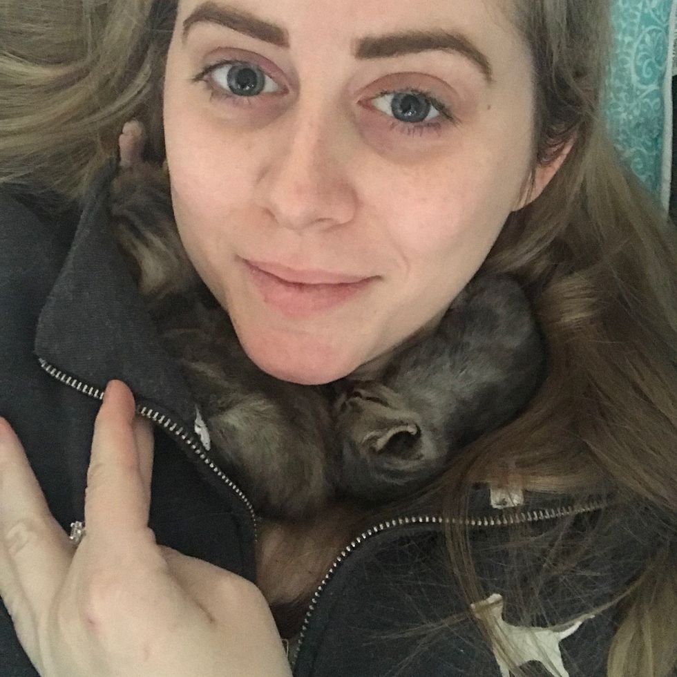 Ashley comes to cuddle with the kittens so mama Sprinkles can get some much-needed replenishment and rest.