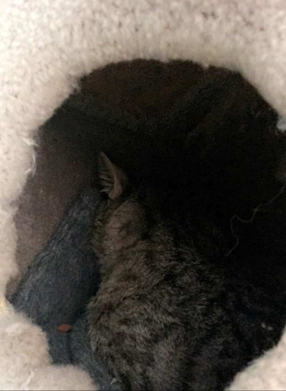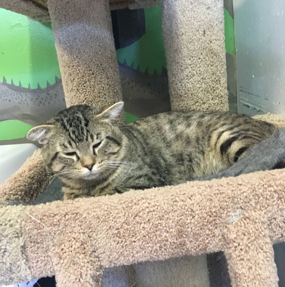 A 3-year-old tabby cat was so shy that he spent most of his day hiding in a cat tree at the shelter, away from everyone. Many had passed him by until one day a woman noticed him hidden in the shadows.