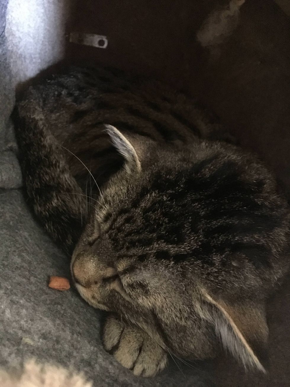 Vincent was found as a stray wandering the streets about a month ago. They nursed him back to health, but he remained very quiet and often retreated to his hiding spots, shying away from people.