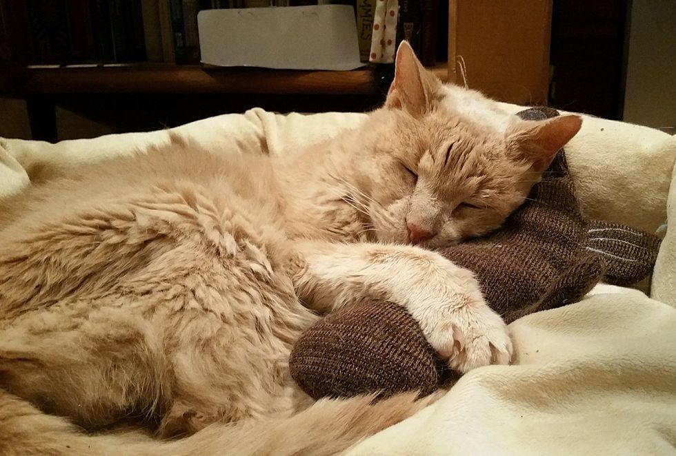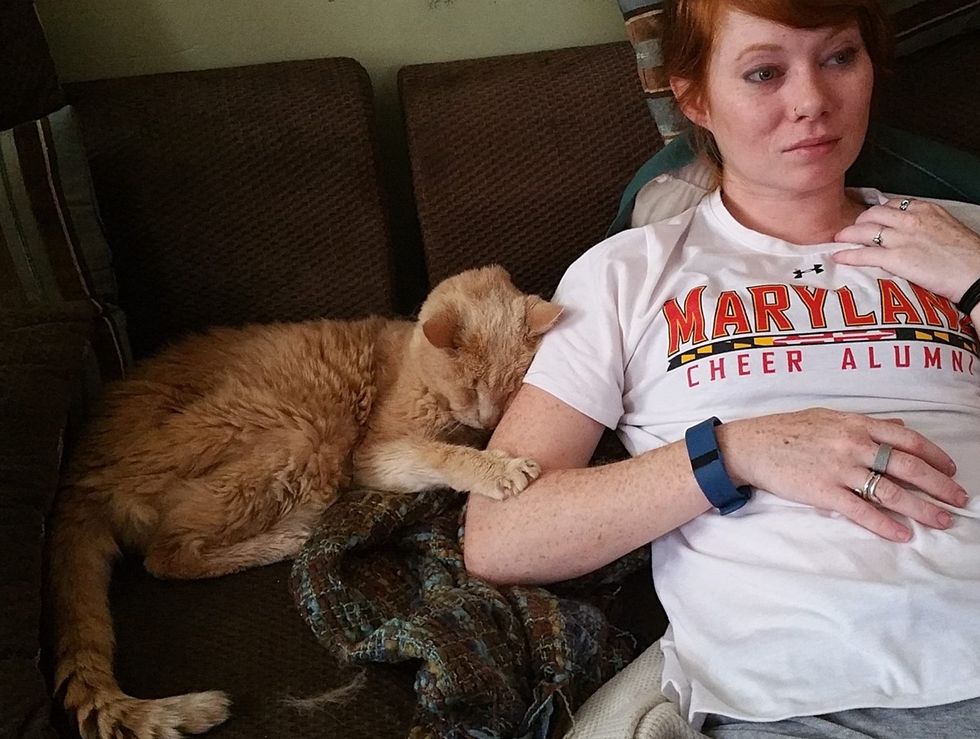 Tigger was adopted at the ripe age of 21. The ginger old boy was abandoned just a few months before at a local vet office. When Adriene and her boyfriend learned about his story, they made a split second decision to adopt him.