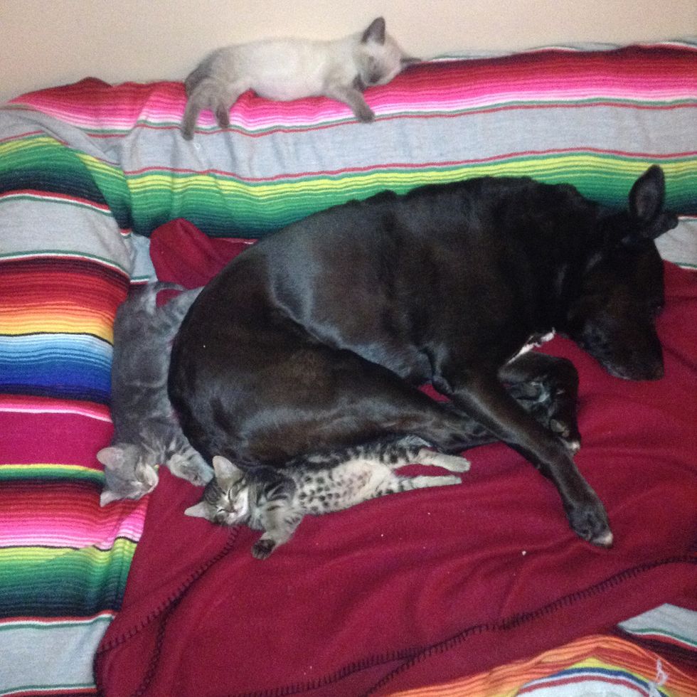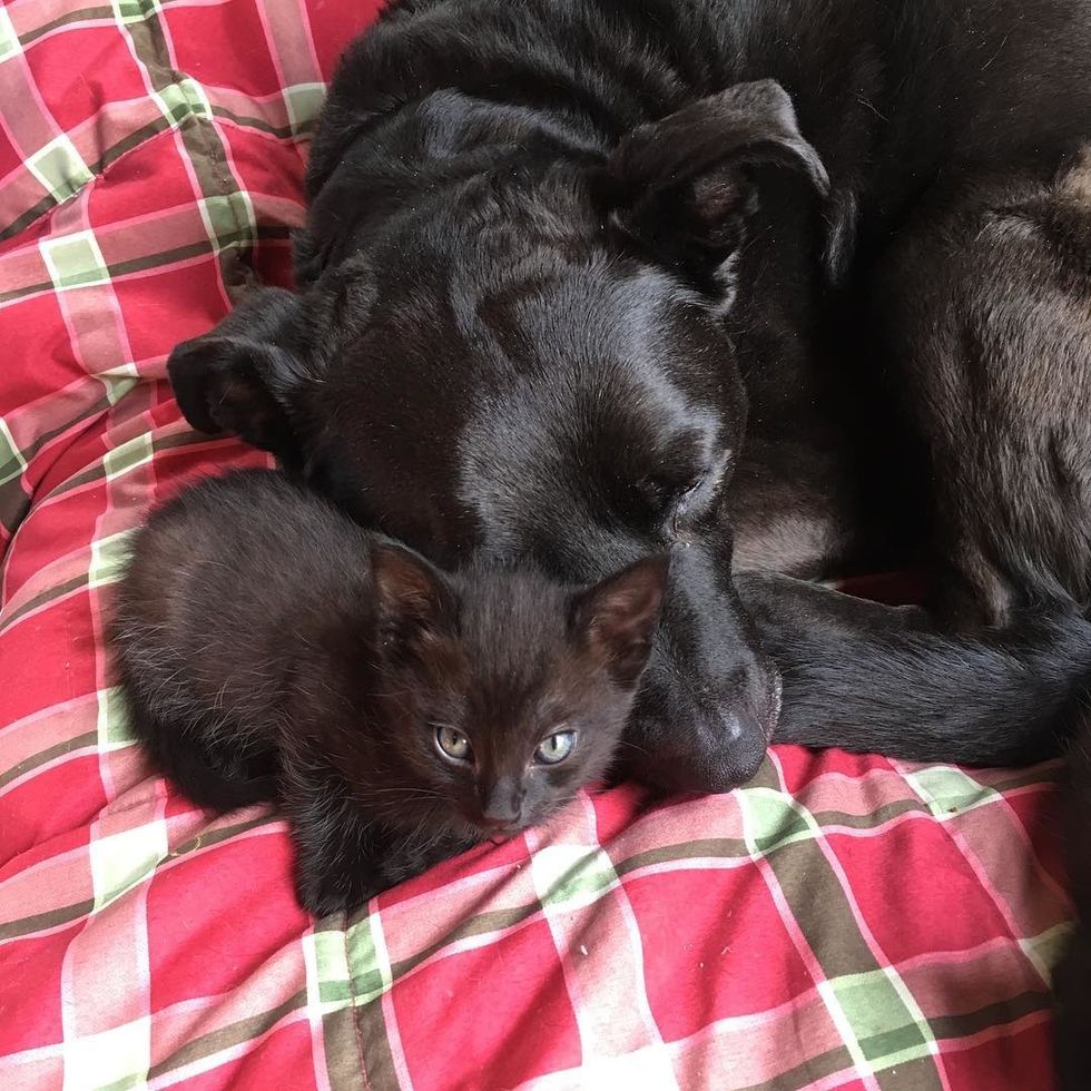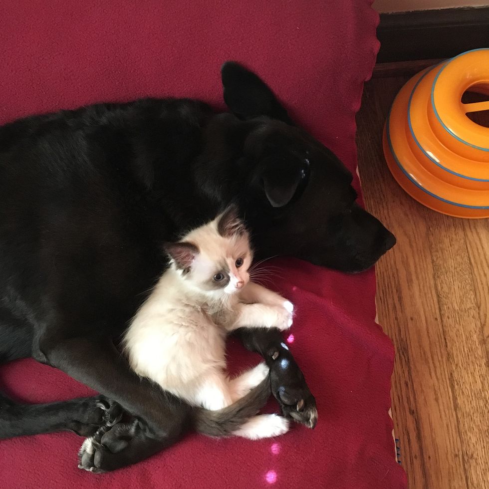 "If kittens are recently separated from their mom, it's great to have something big, warm and fuzzy to cuddle up with," Ronda told Love Meow.