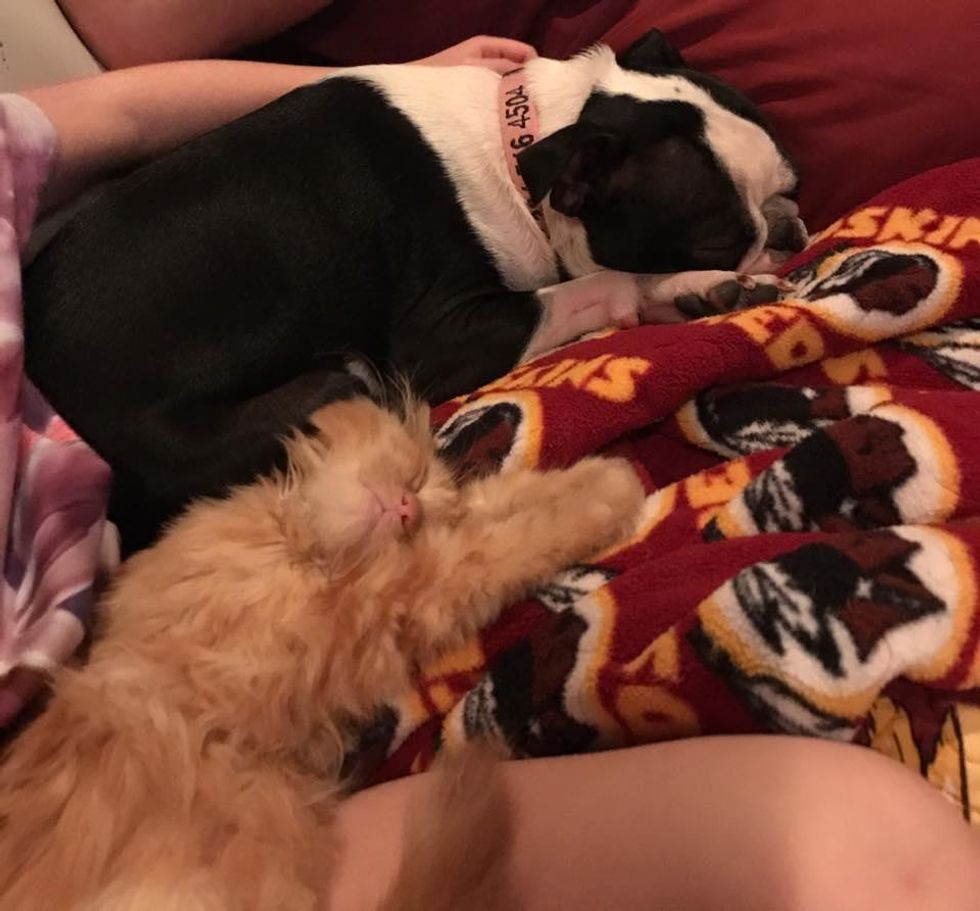 Tammy Braley and her family opened their hearts to Sid. Their family dog took to the little guy and snuggled next to him for a nap.
