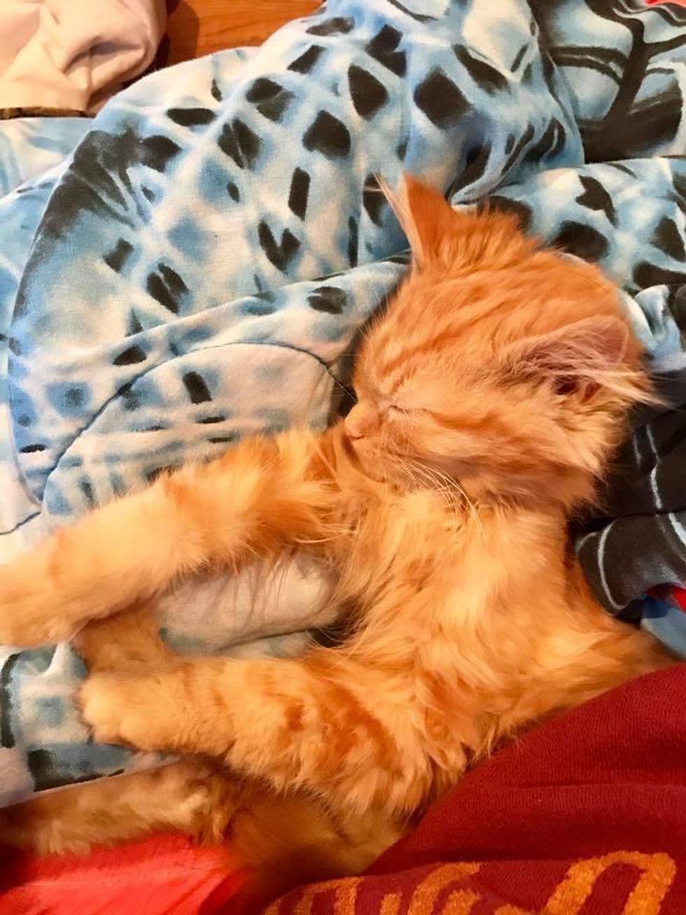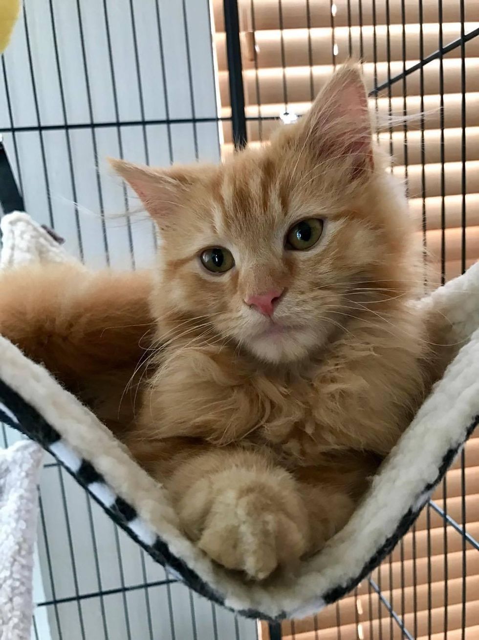 They took the kitten to the vet where they found a lot of matted fur all over his coat and began shaving off the knots and mats to give the ginger boy much-needed relief.
