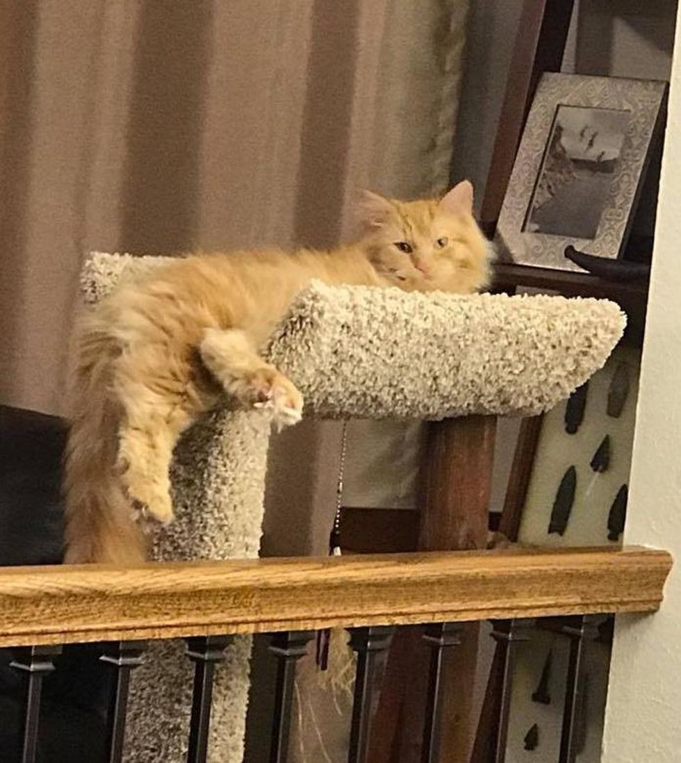 "We are patient with him, and he does have a female cat that he cuddles and plays with."