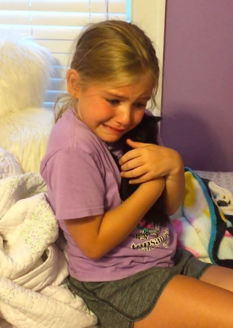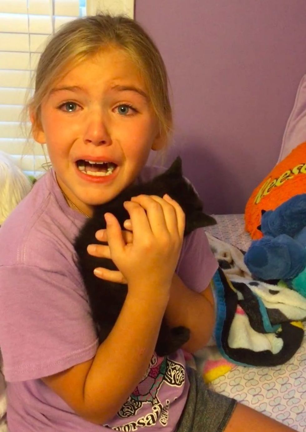 A nine-year-old girl was in complete disbelief when she came home to a tiny black kitten.