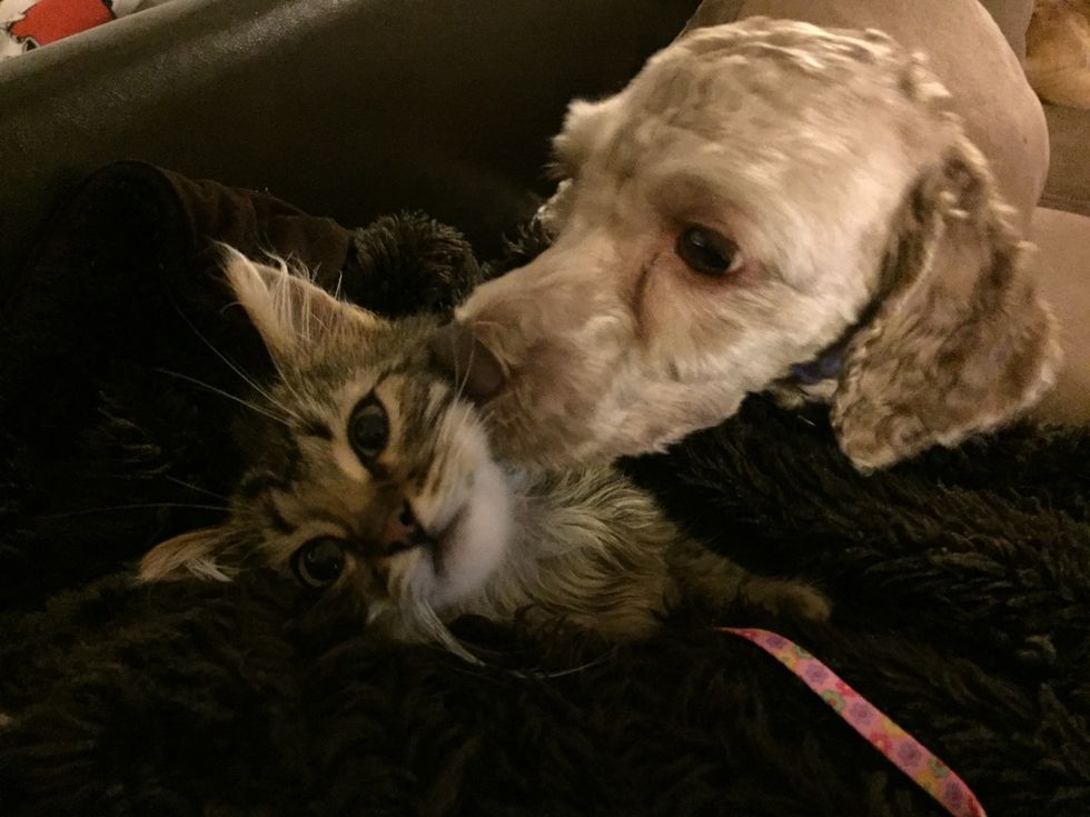 Cheshire getting a lot of love and kisses from his new "mama".