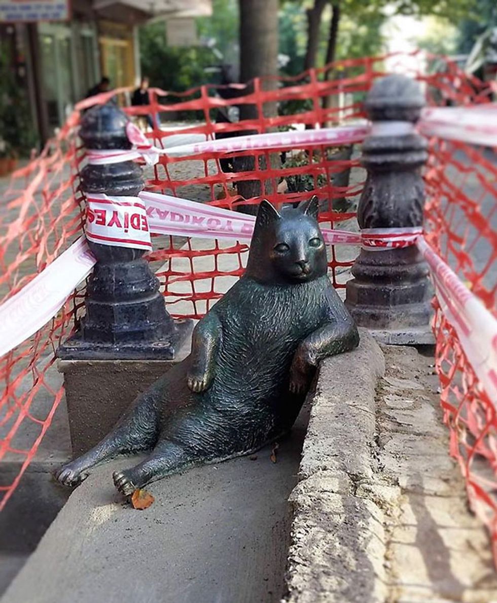 Tombili passed away in August from an illness. The city of Istanbul was saddened by the loss, but not before long, a statue of Tombili was erected at his favorite spot.