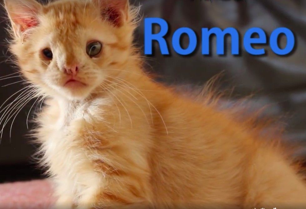 Little Romeo was born with a deformity which caused him to look a bit different, but the ginger boy is just as playful and affectionate as any other cat.