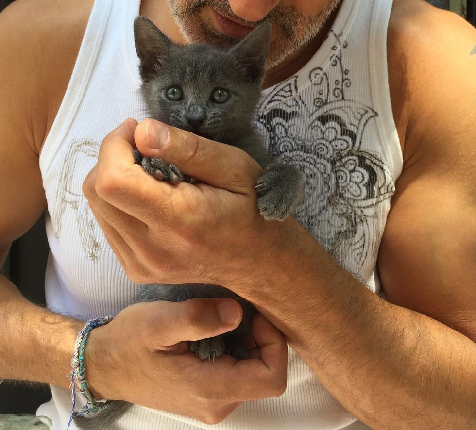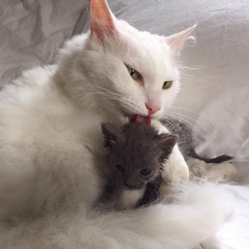Luckily Bogdan's family cat, Laban, took the little kitten under his wing, kept her clean and taught her how to be a cat.