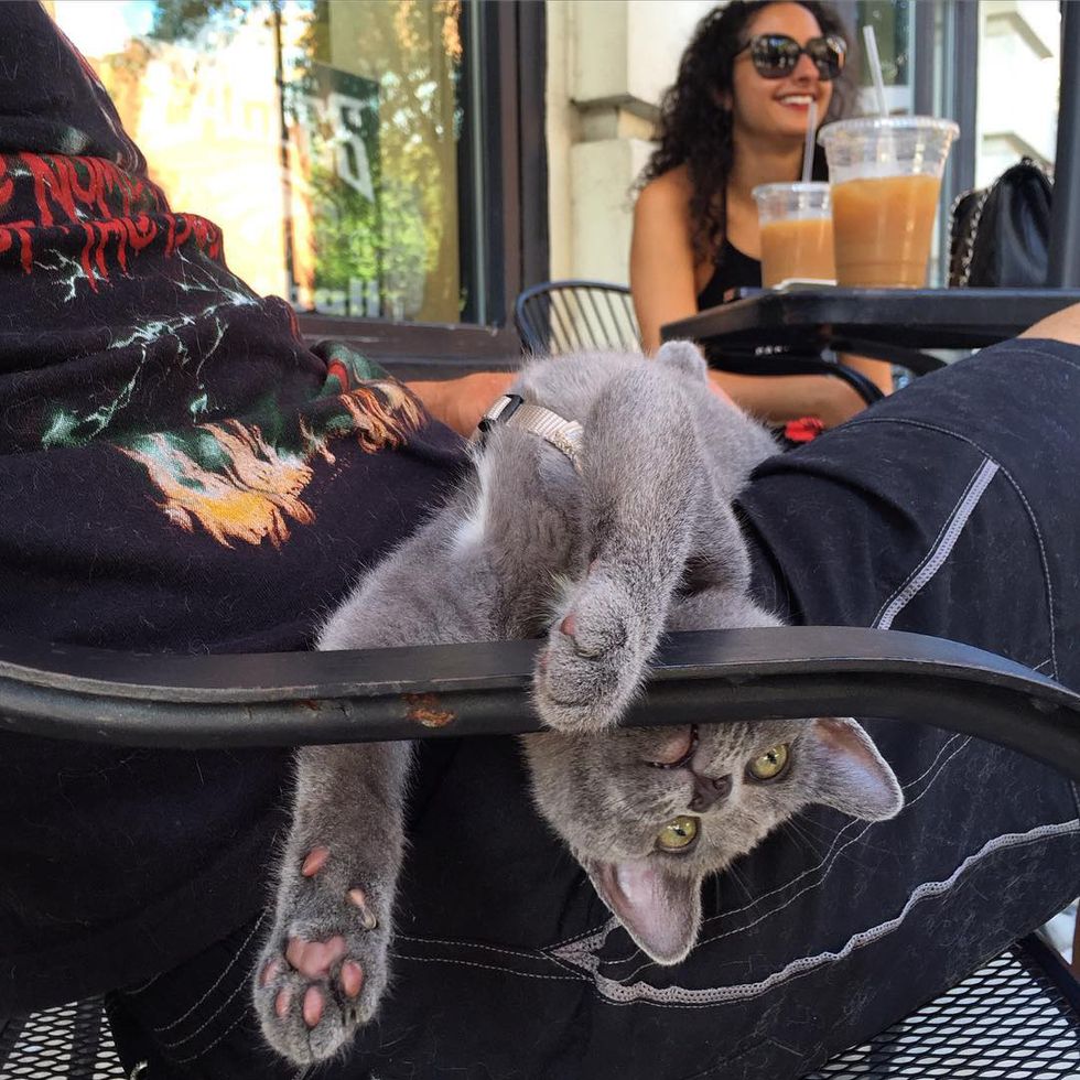 When she was a few months old, Bogdan thought it would be an adventurous idea to visit and explore different places together with his beloved kitty. Stinkie was inseparable from him like velcro, so he decided to take her with him everywhere he went.