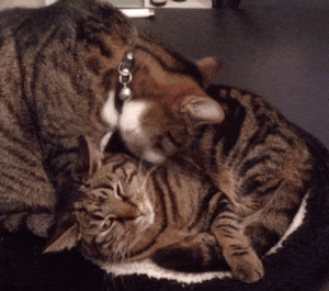 Lancelot puts his paw on his brother and falls asleep next to him.