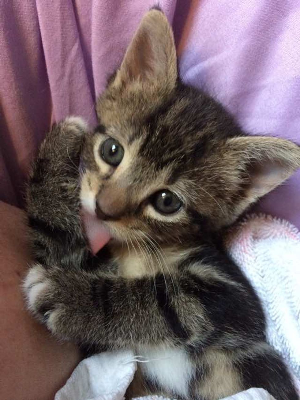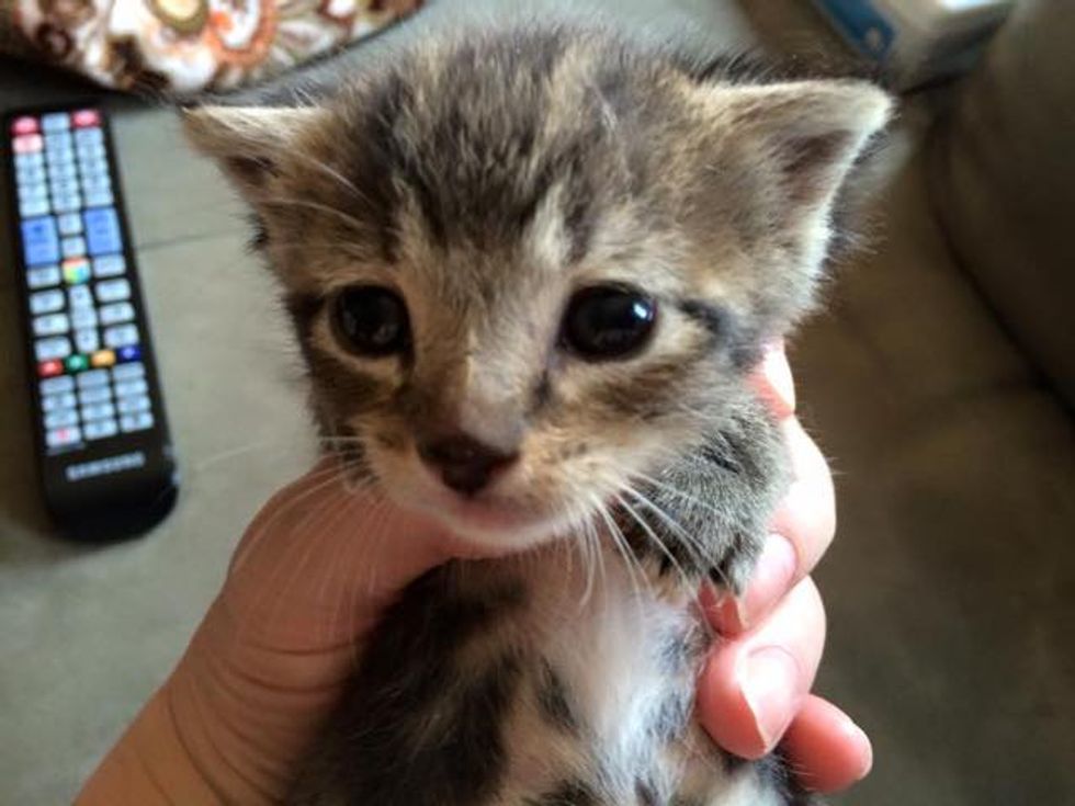 We believe her momma had three total, Angel being the runt, knew she couldn't care for her and brought her up to our porch."