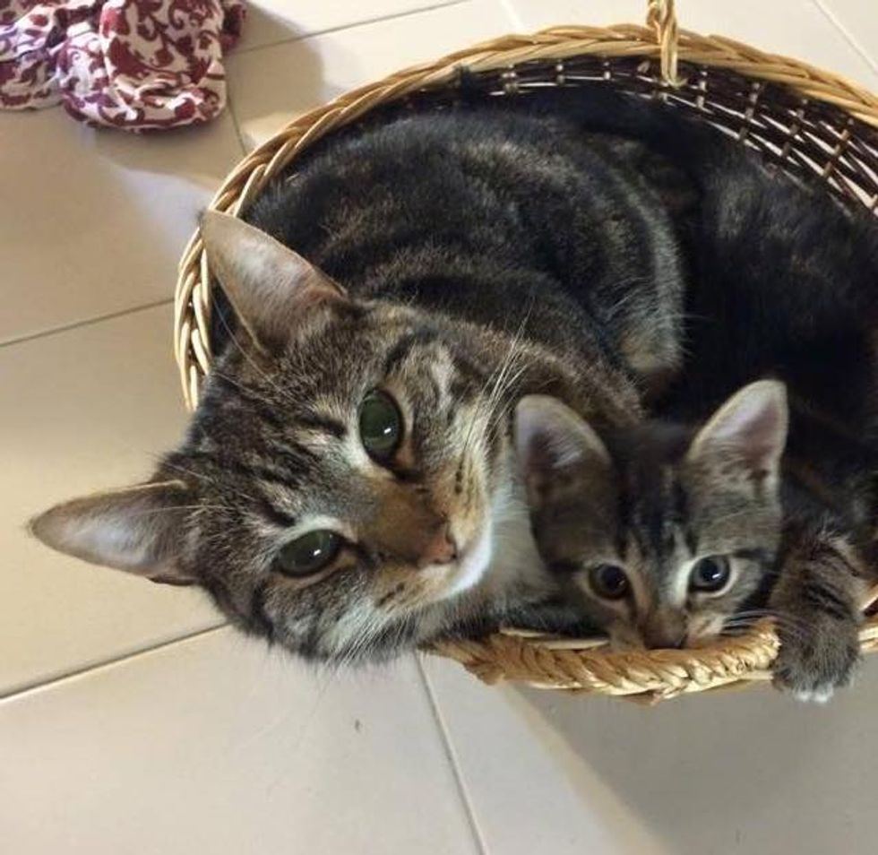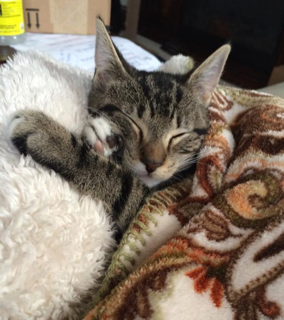 "I was actually beginning a nine day off stint from work, and hubby usually works from home. I took night shift, he took day shift, and the other six ferals-turned-love bugs watched over her intermittently."