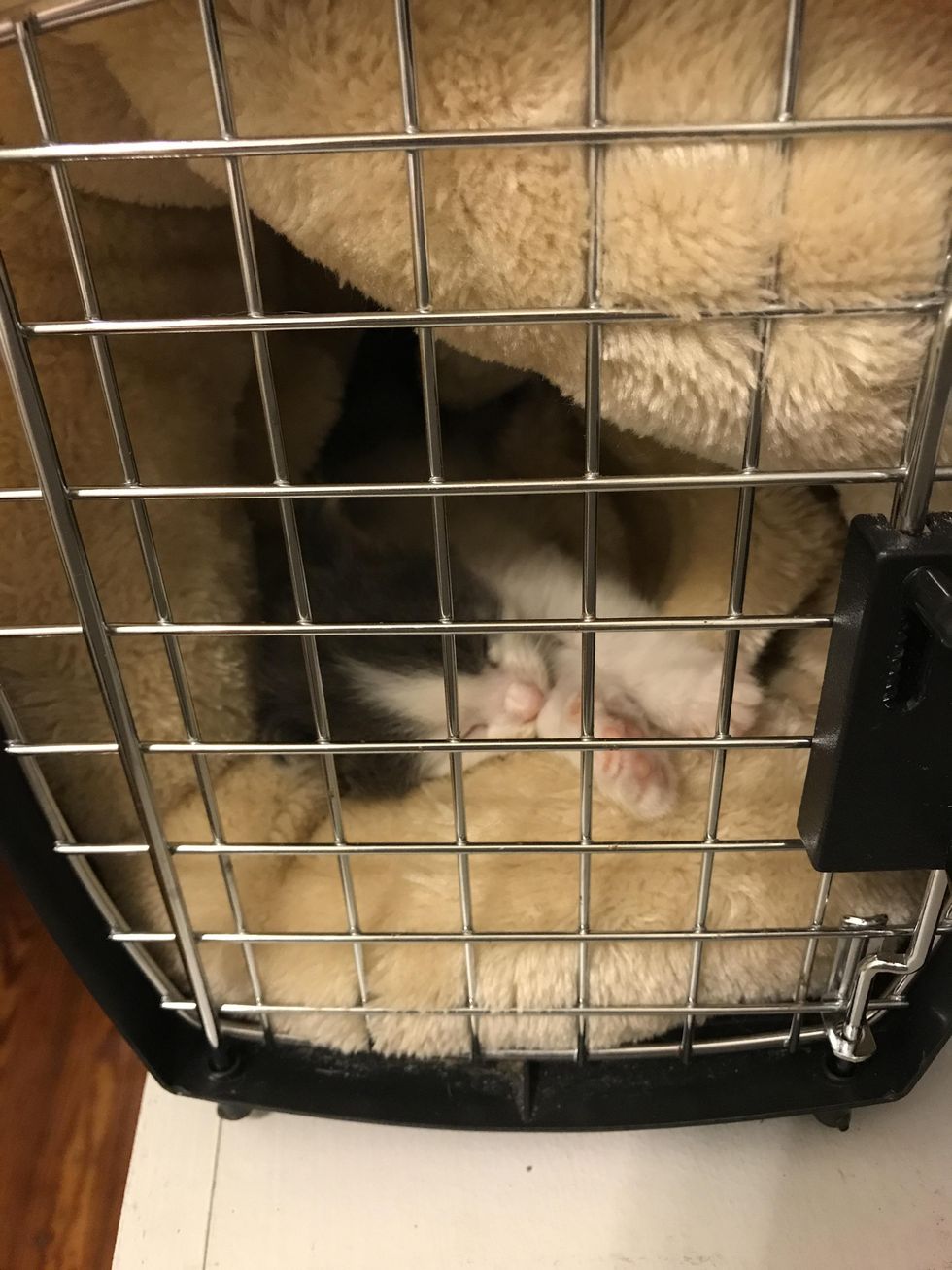 The cat mama somehow left her kitten behind. When Sarah and her roommate Bridget came to pick up the little feline, they were surprised by how tiny she was.