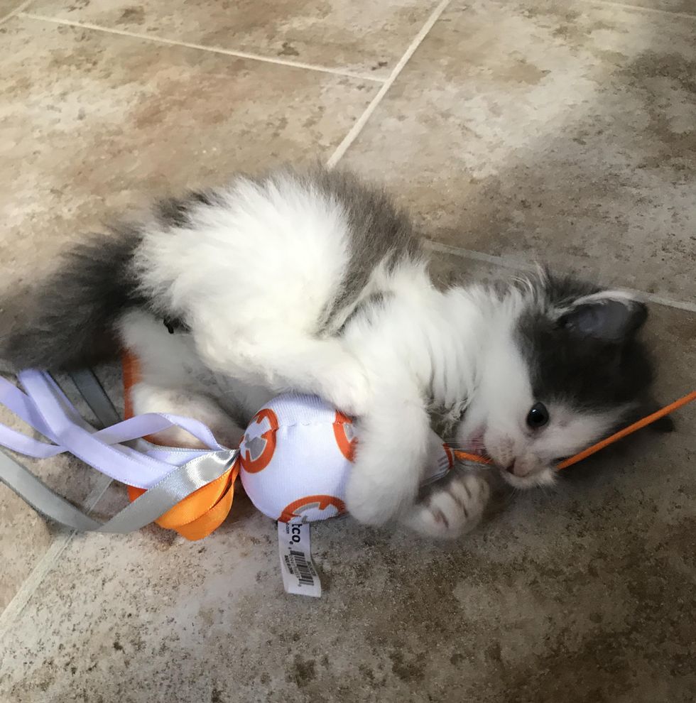 It was touch and go for a while, but the little kitten pulled through and started to thrive.