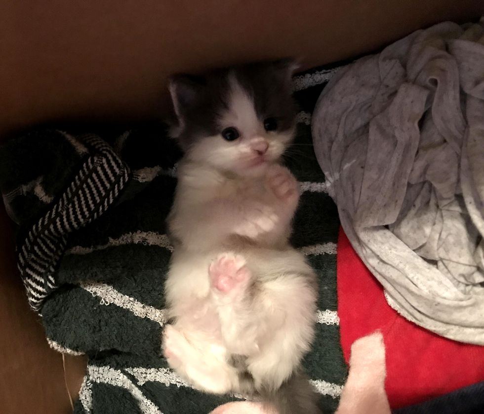 On June 12, a kind woman and her daughter spotted a tiny kitten wandering on her own in need of help. They waited for the cat mother to come back, but she never returned. The woman went on Facebook to seek help for the little kitten, and that's when Sarah came across the post and offered to take her.