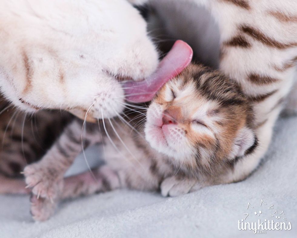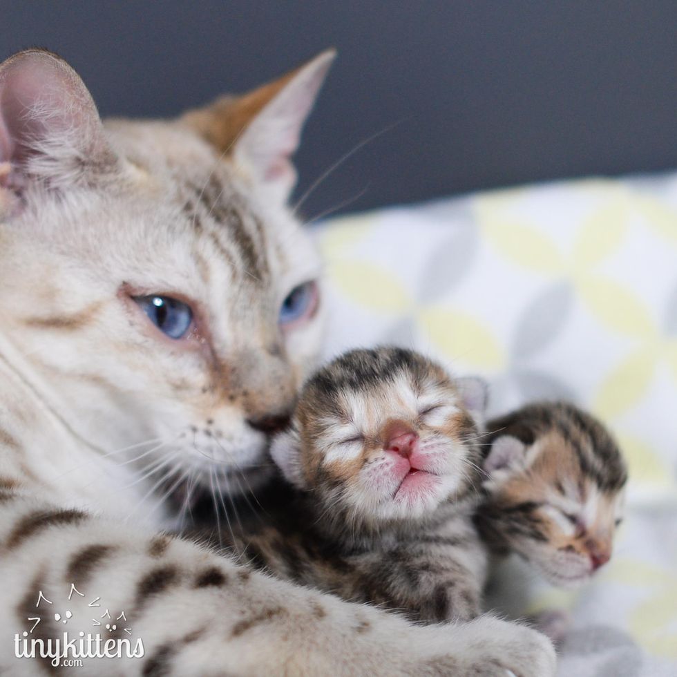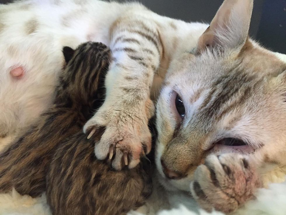 At the time, the sweet Bengal showed many signs of miscarriage, but the incredible mama cat pulled through and gave birth to two beautiful babies.