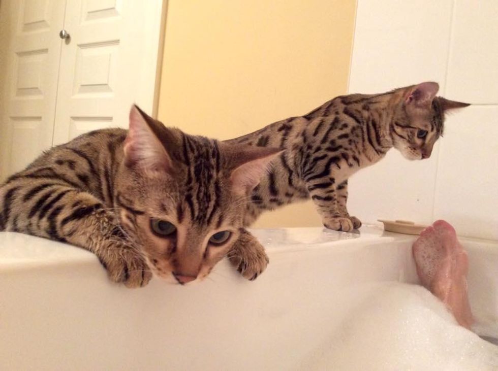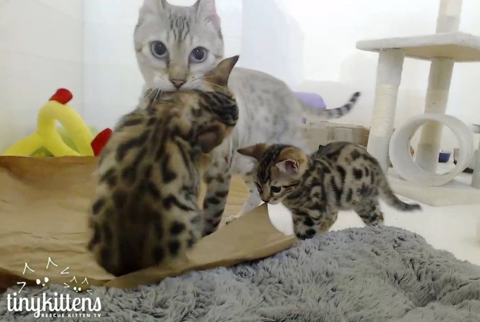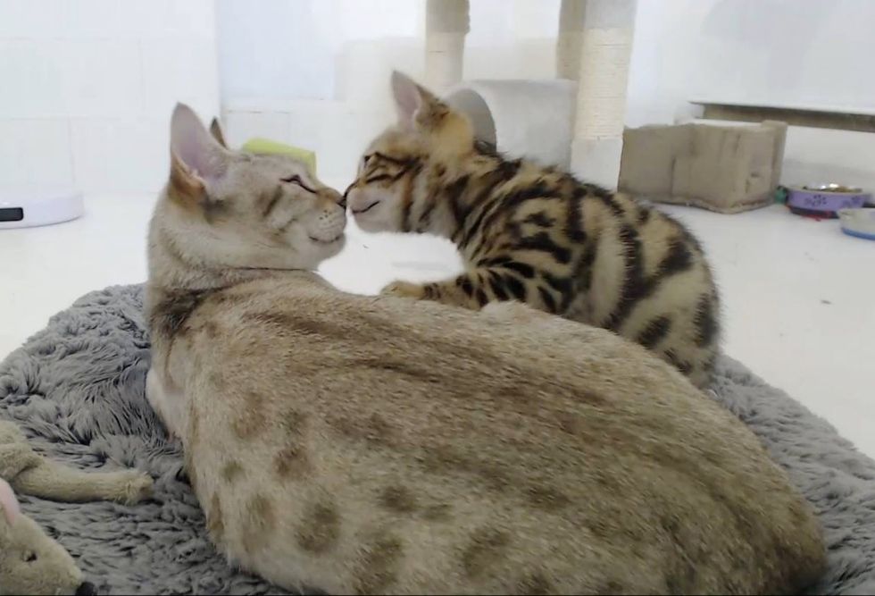 The two Bengal kittens have rubbed off their mama's personality, and are as sweet as they can be.
