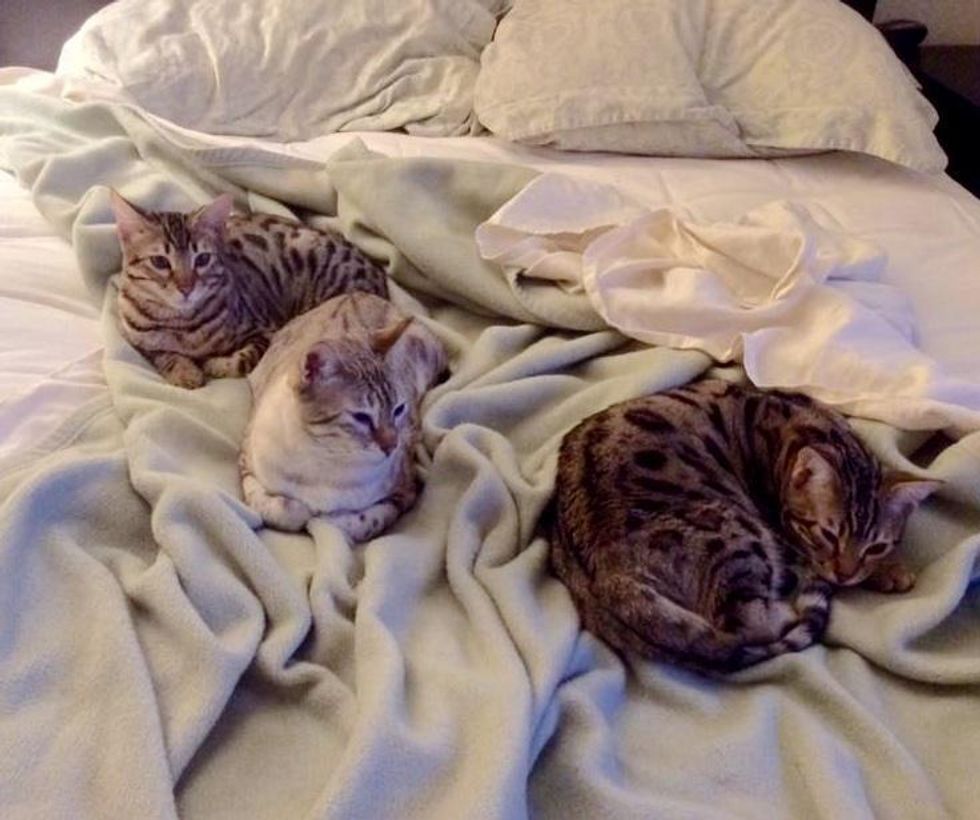 Meet Felicity the mama cat and her babies, Felix and Keiko.