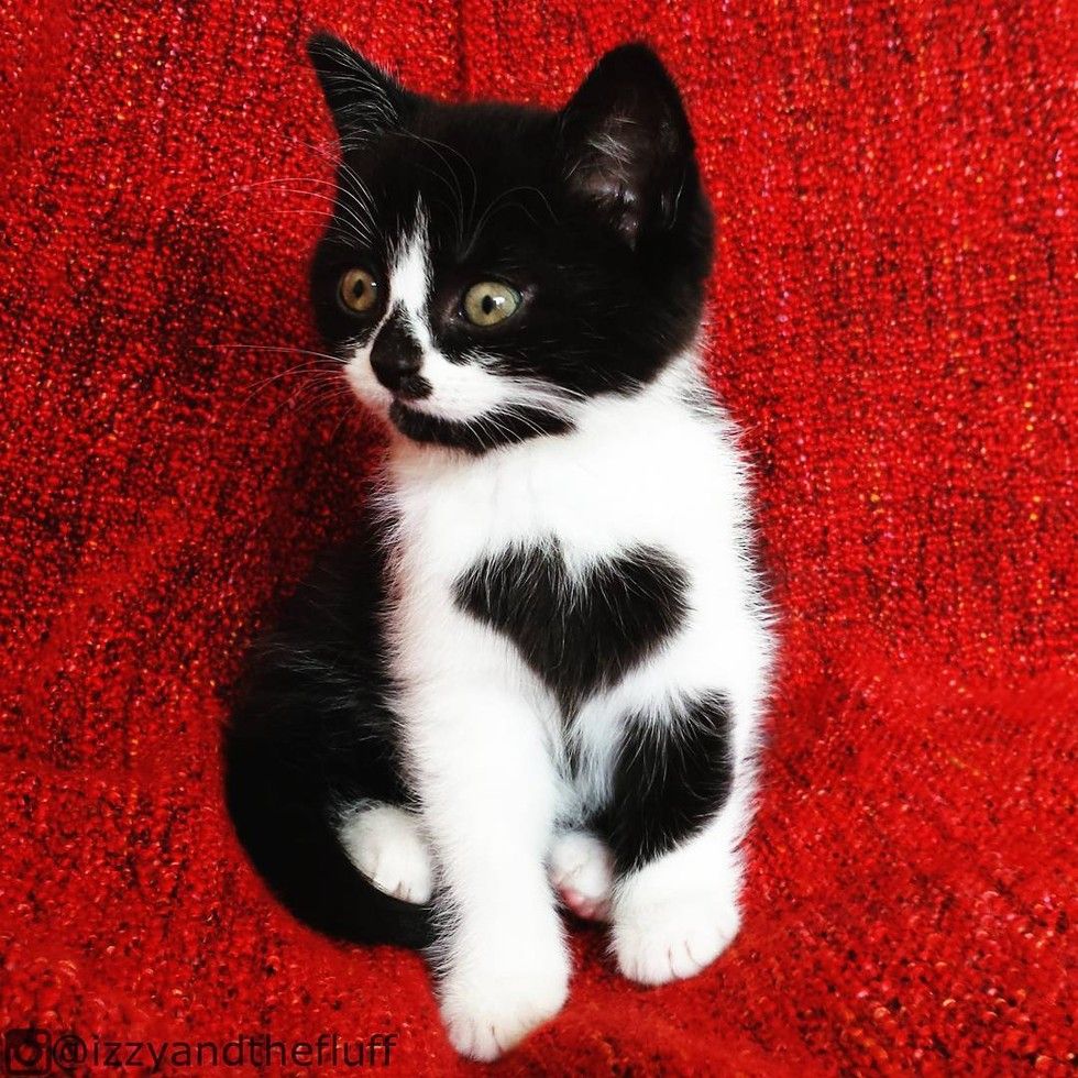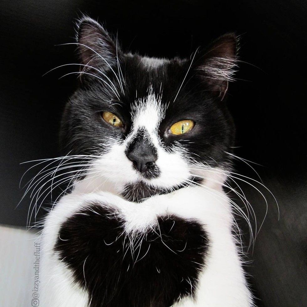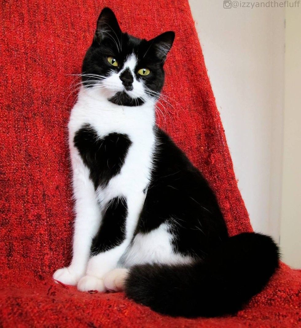 This beautiful tuxedo cat shows her human love every day by wearing her heart on her chest.