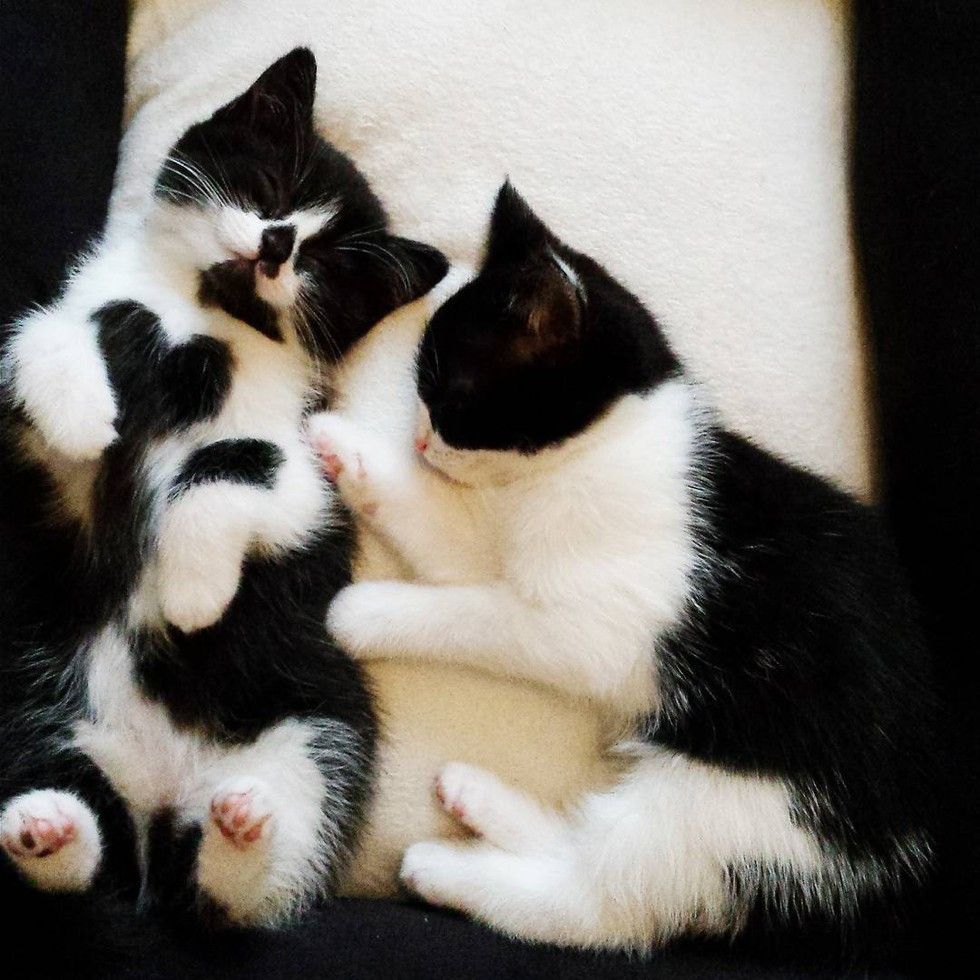 But what sealed the deal for them was when they found out how close the two kittens were. "They were the only tuxedos of their litter and did everything together. We couldn't resist their sisterly love and went home with both."