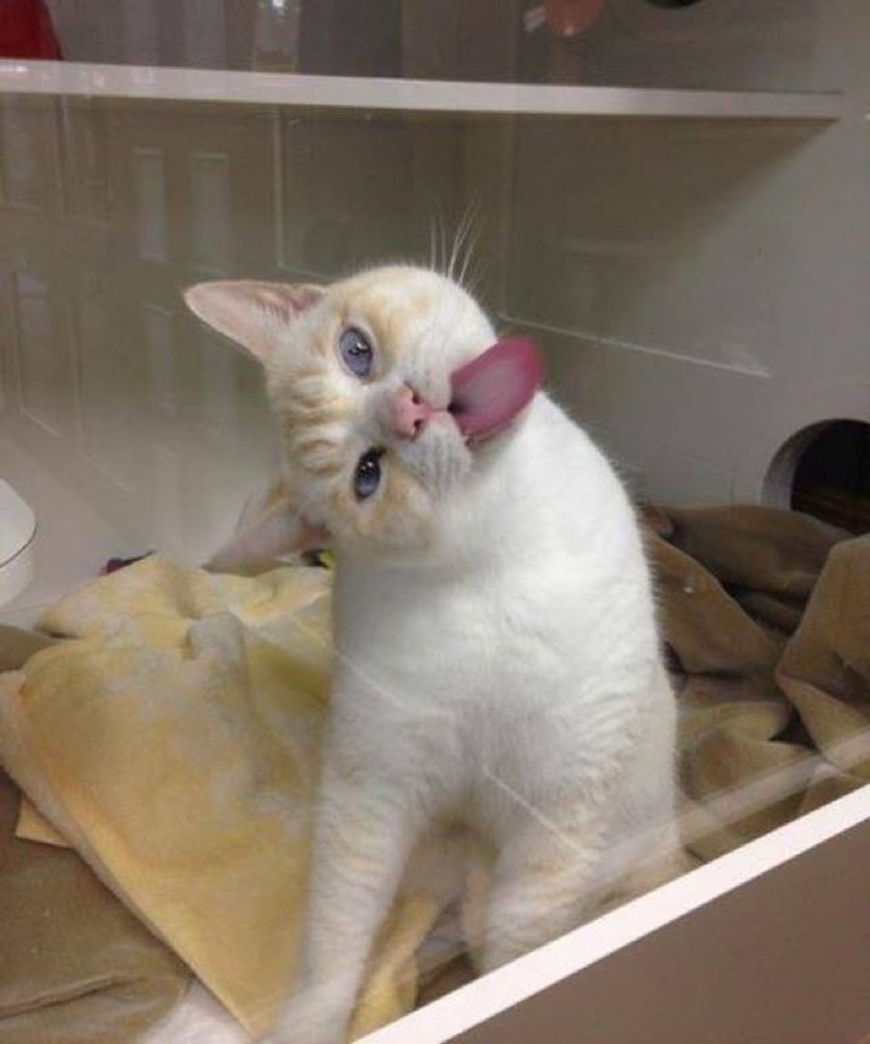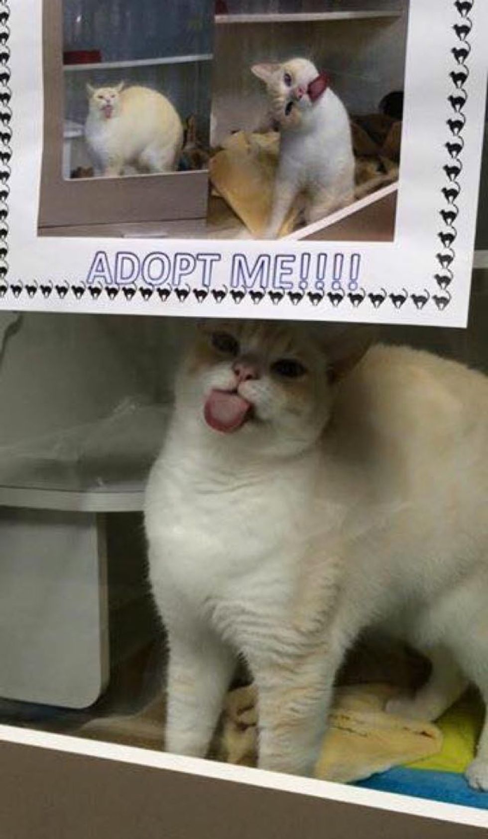 Sigmund the three year old cat has come up with new ways to get adopted! This handsome boy wants to be the center of attention! :)