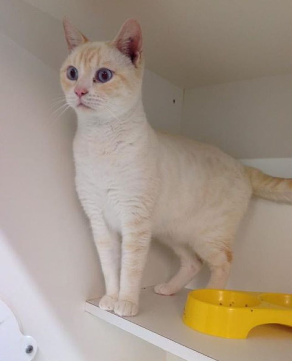 "He was adopted a few months ago but returned after a couple of weeks because the owners felt he played too rough. He's a lovely smoochy boy but when he's had enough he'll let you know (like all cats!). I really hope he finds a home soon, the poor boy has been in the shelter for a while now," reddit user quackeree wrote.