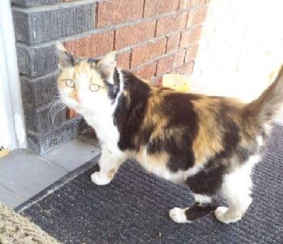 A stray cat was found wandering outside near Keele and Lawrence in Toronto. A family that spotted her, began to feed her twice a day. Then one day the sweet calico decided it was time to move in. She begged and even demanded to come inside their home.